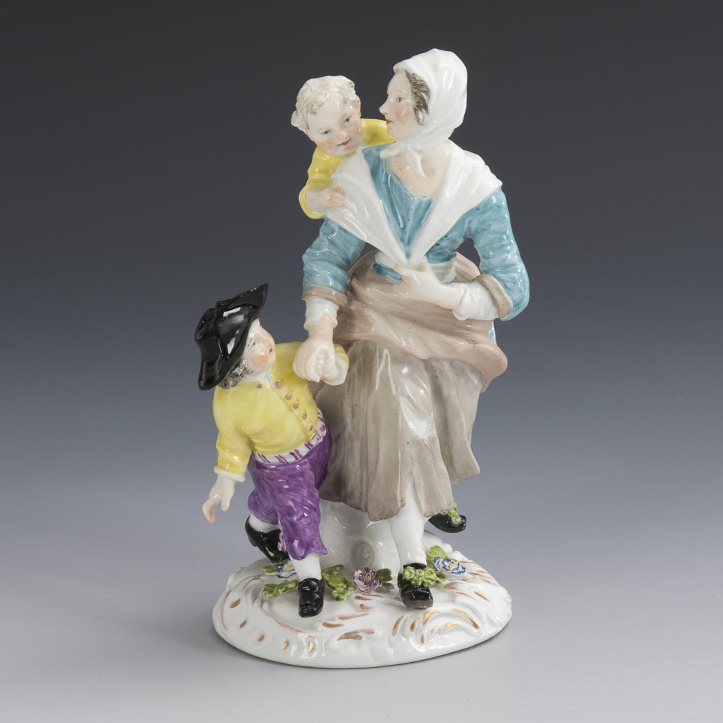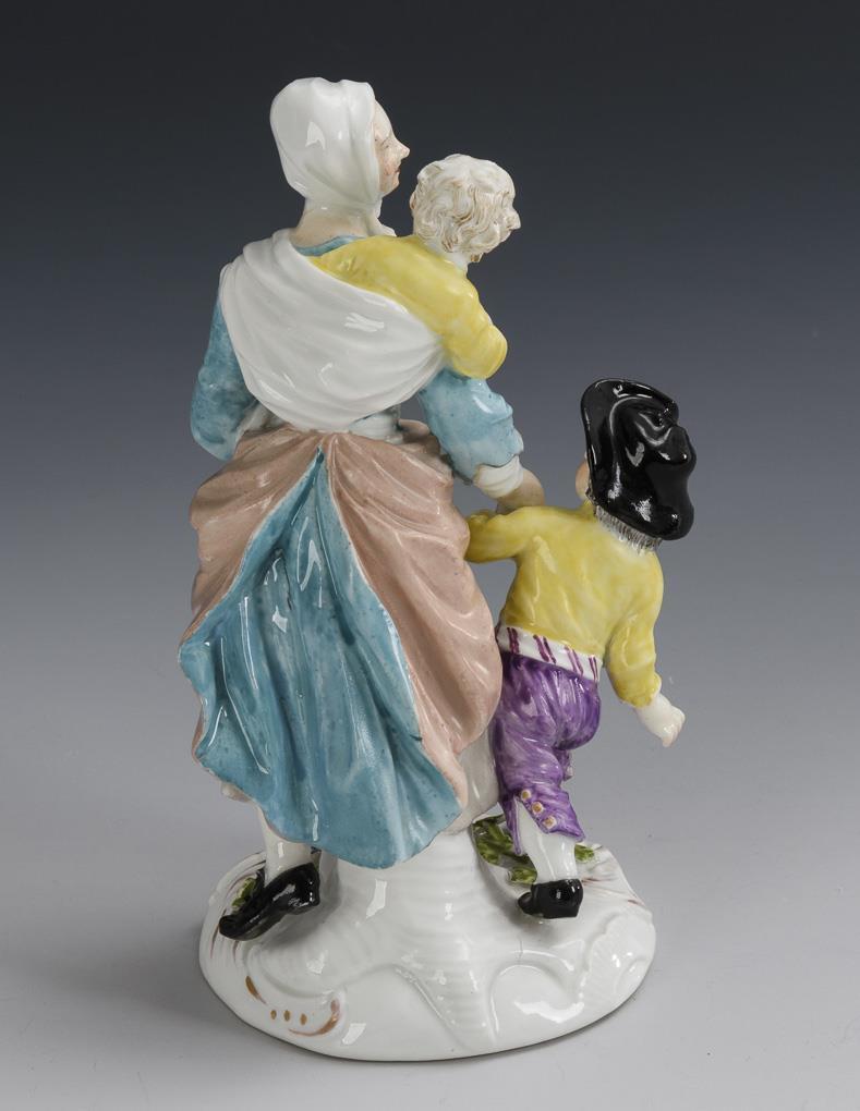 Rare beggar woman with two children. Meissen.