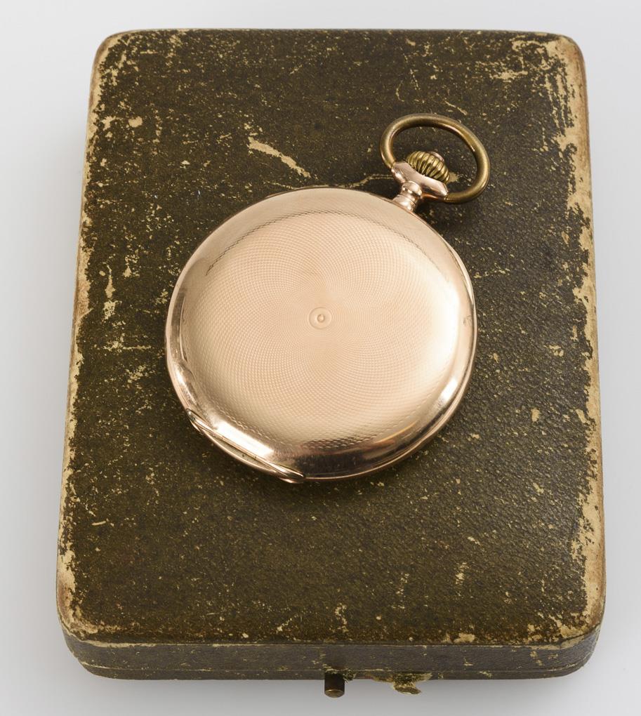 585 hallmarked, Swiss hallmark, fineness stamp, company mark, metal dust cover. Ø 5 cm. 76 g.