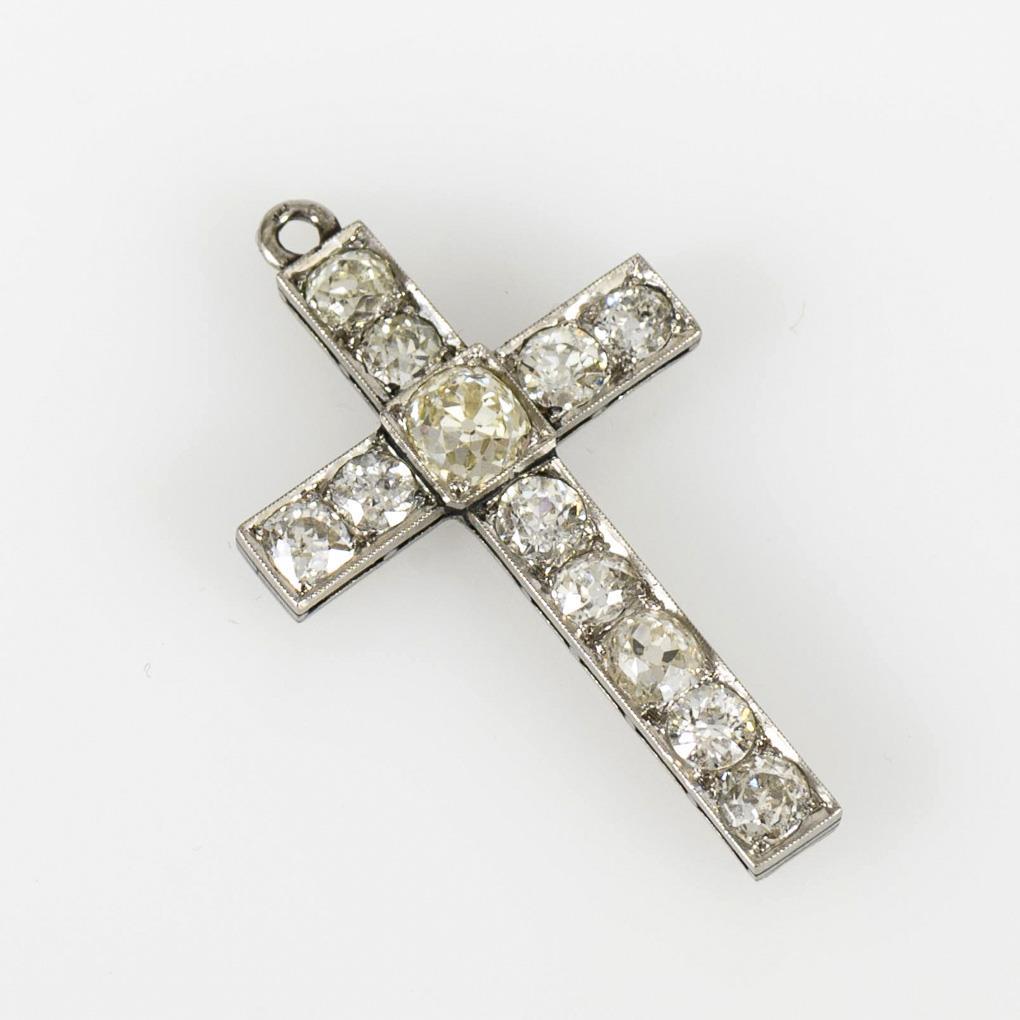 Art deco cross pendant with old cut diamonds.