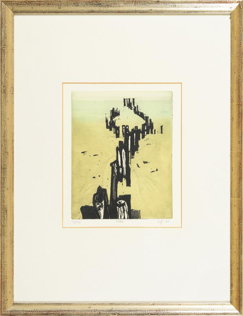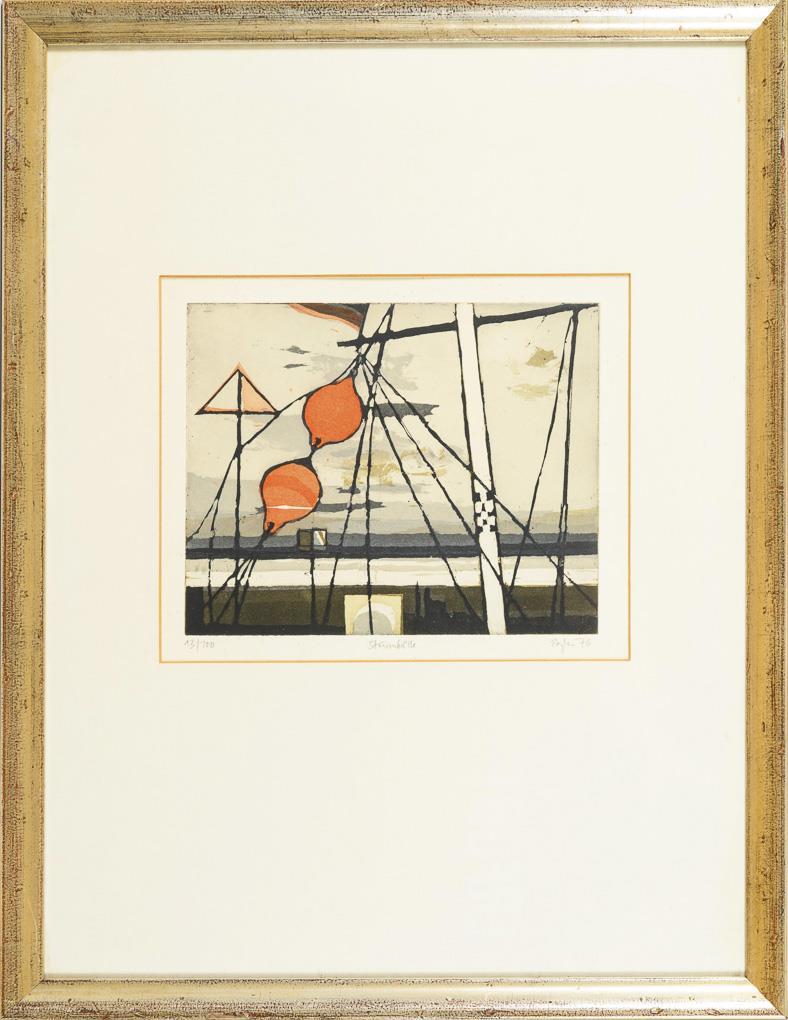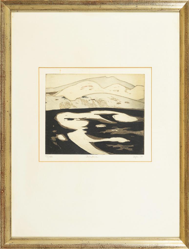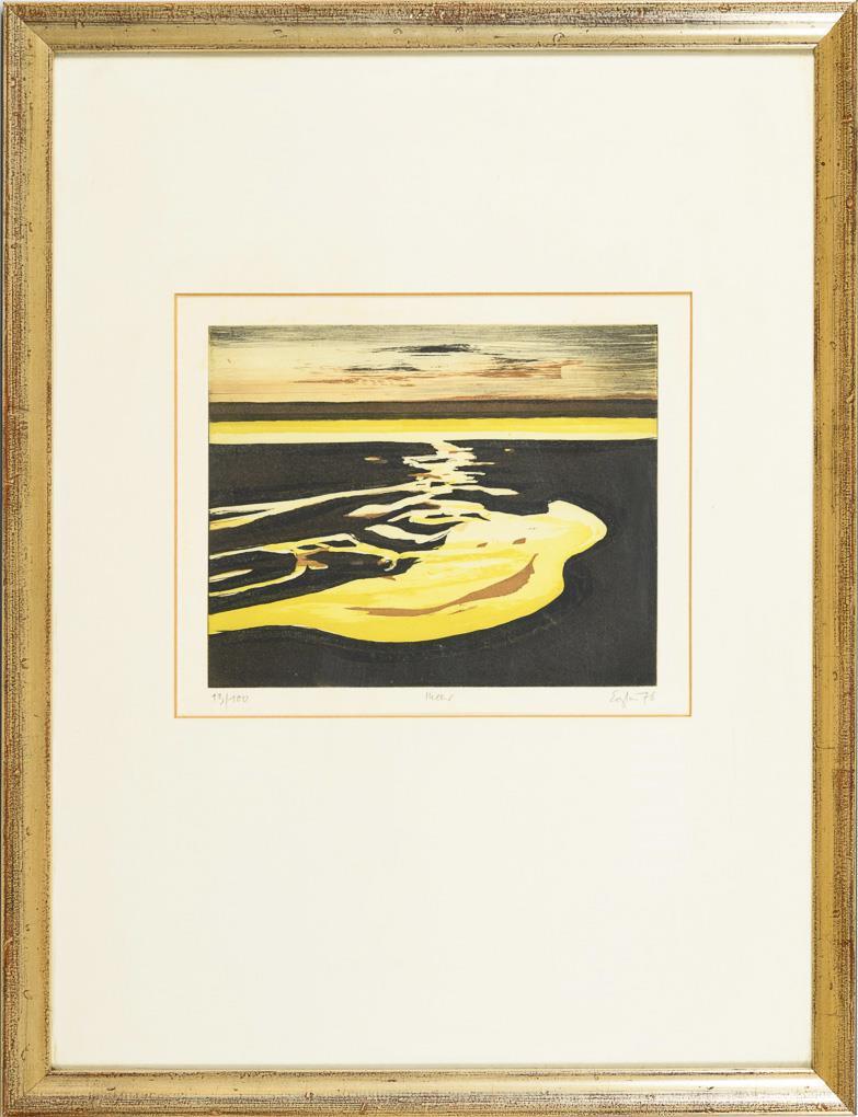 "Mudflats", printing plate: 20 x 25 cm, copy: 13/100, [19]76 | "Low Tide", printing plate: 25 x 19,5 cm, copy: 13/100, [19]76, minimal foxing | "Storm Balls", printing plate: 20 x 25 cm, copy: 13/100, [19]76, minimal foxing | "Sea", printing plate: 20 x 25 cm, copy: 13/100, [19]76 | "Dune Lake", printing plate: 20 x 25 cm, copy: 13/100, [19]76, minimal foxing | "Stages", printing plate: 28.7 x 21 cm, copy: 13/100, [19]76, minimal foxing.