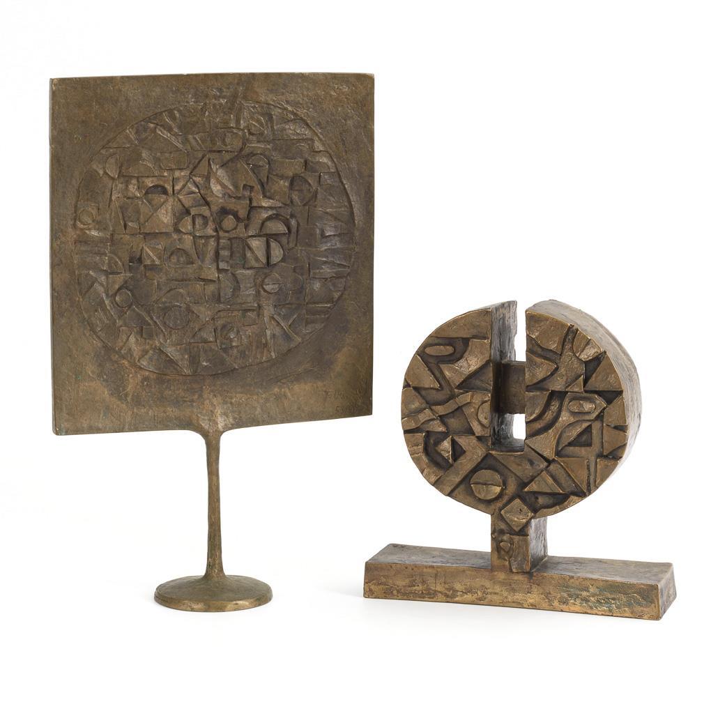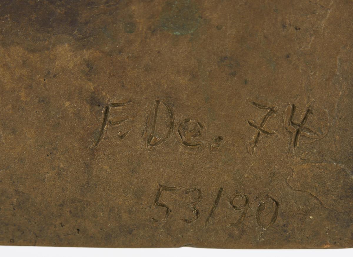 Bronze patinated, bronze base. Each inscribed with monogram, each with addition "17" or "74" and "53/90". H 24,5 and 43 cm respectively. together 10,2 kg.