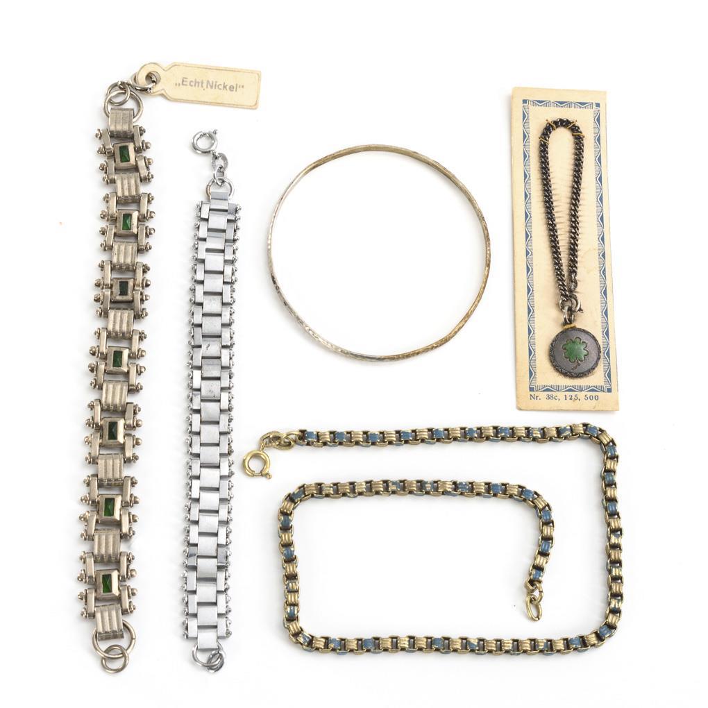 In addition 5 pieces of jewelry from the Bengel production. (3 bracelets, chain, bangle, L 16.5/20/13/43 cm. Ø 6.8 cm).