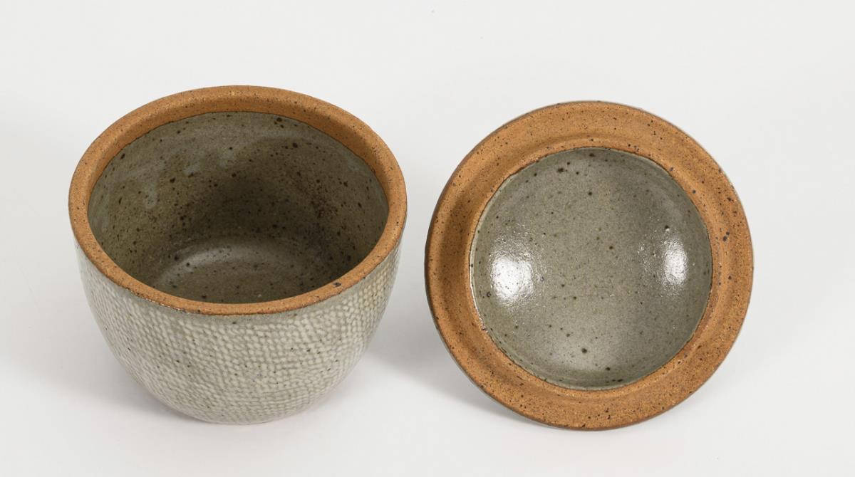 Ceramic. Box H 13 cm; plate Ø 14,5 and 26,5 cm.