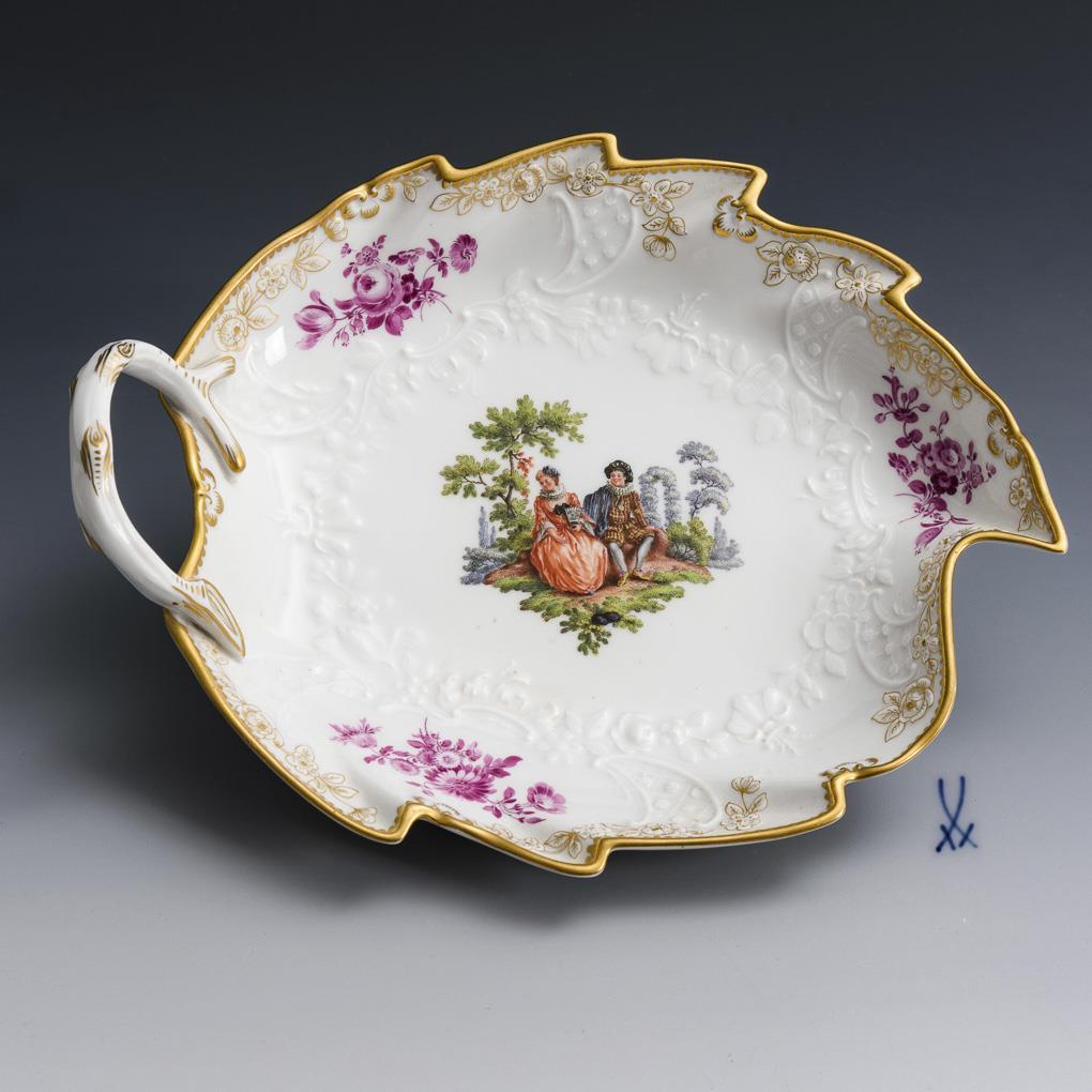 Form "Marseille". In the mirror, the image of a gallant couple in a park landscape, on the flag small purple flower bouquets.