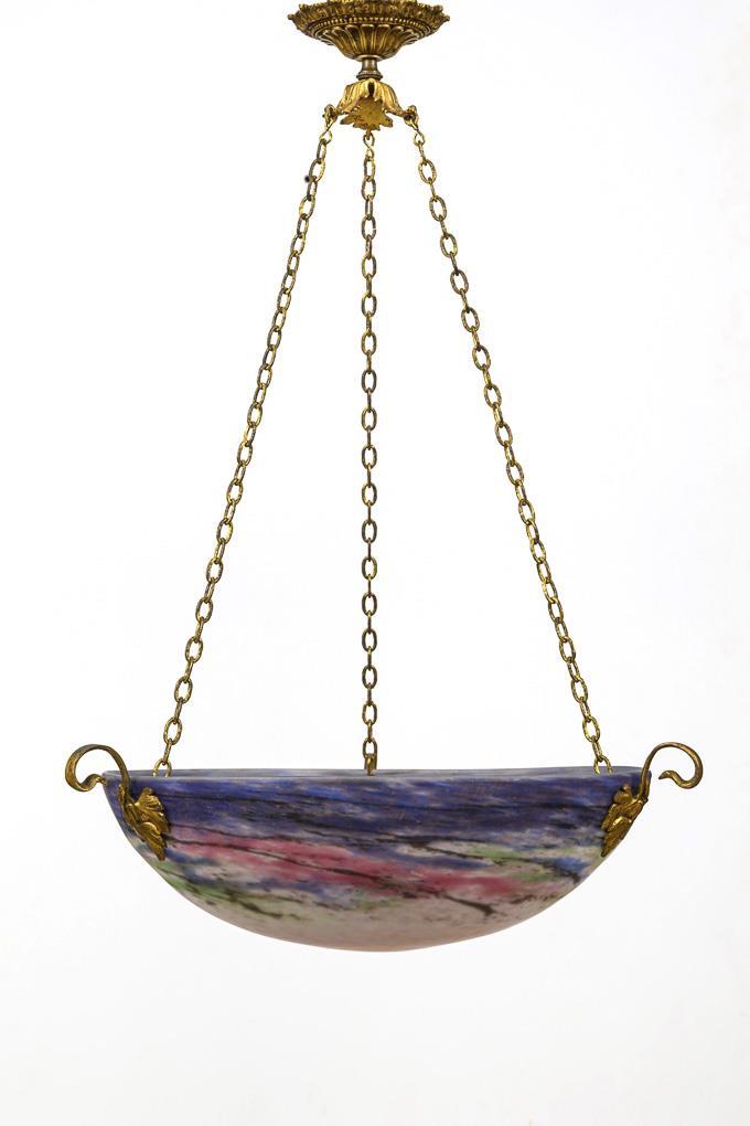 1-light hanging lamp with glass bowl on chain suspension with rosette canopy. Slight signs of age/use.