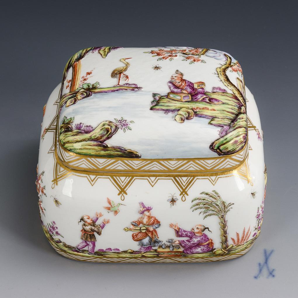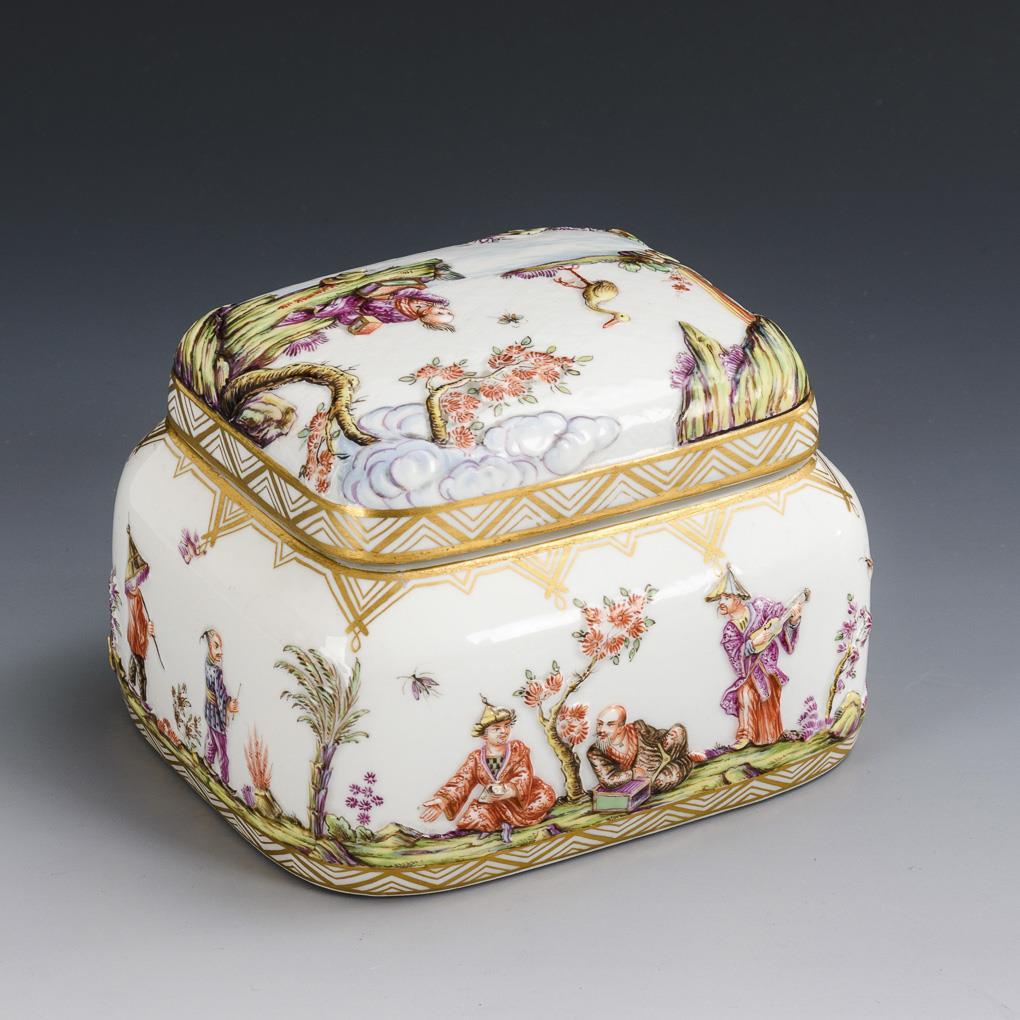 Rectangular box with a capodimon style chinoiserie relief on all sides.