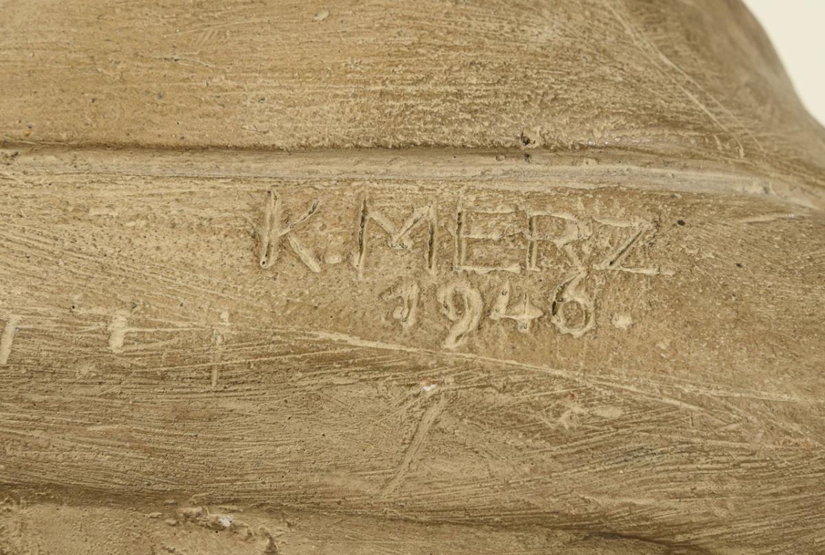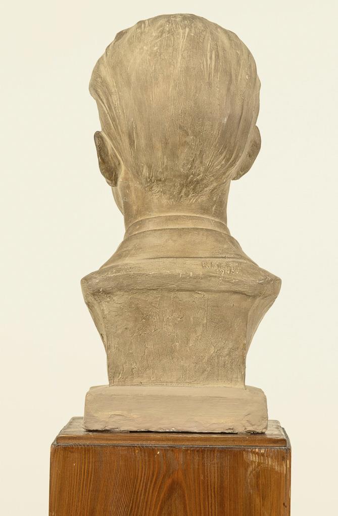 Gypsum slightly burnished. Inscribed with date 1946. h 46 cm, total 180 cm. Bust 12 kg, pedestal 16,9 kg.