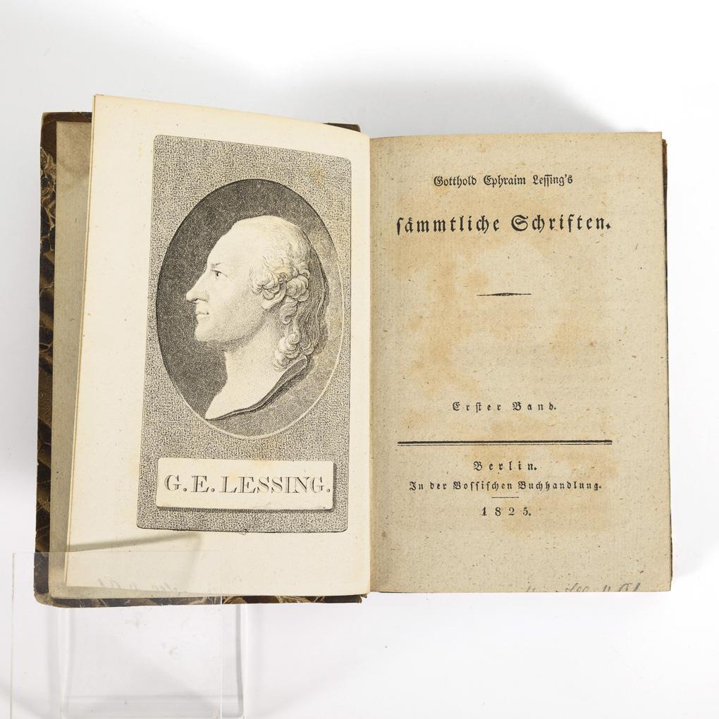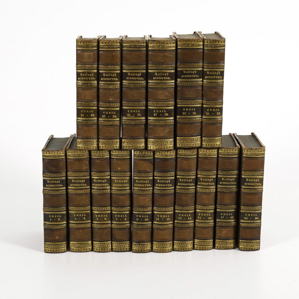 Volume 1 with a portrait of Lessing, volumes 3 and 32 with some illustrations, volume 9 with plate. In gilt-stamped half-leather binding.
