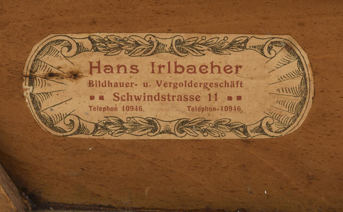 Verso original paper label of the frame maker in Munich with address Schwindstr. 11. 1st third 20th century STUCK, Franz von (design)(1863 Tettenweis- 1928 Munich)