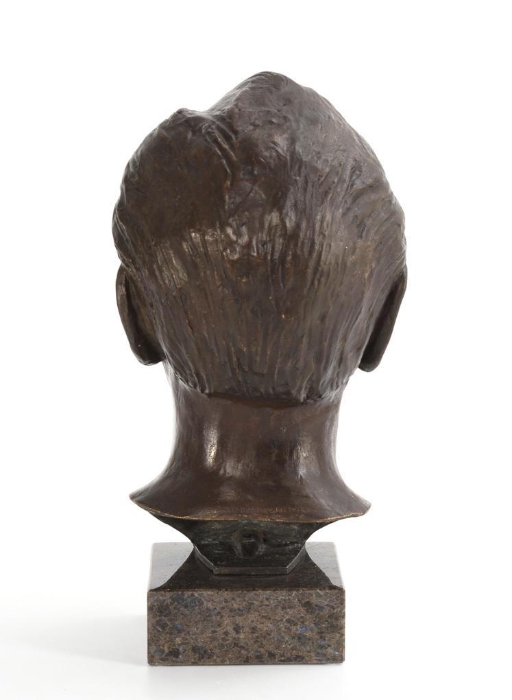 Bronze with high copper content, patinated, dark gray marble base. Inscribed with date "1932". H 41 / 47 cm. 12,5 kg.