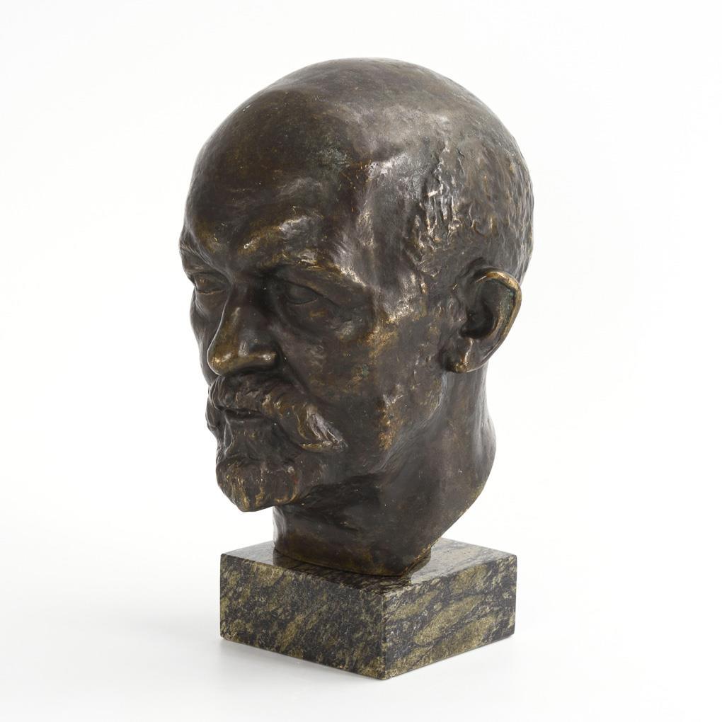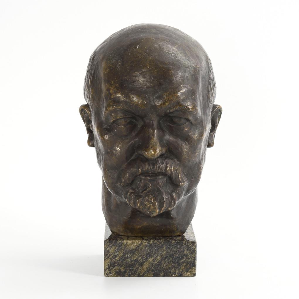 Expressive portrait of the car designer and major industrialist. Bronze and marble each somewhat rubbed / bumped.