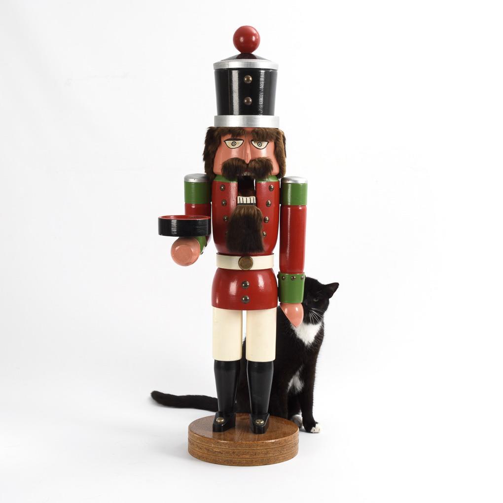 Nutcracker with brown hair and beard of real fur. Slight signs of age.
