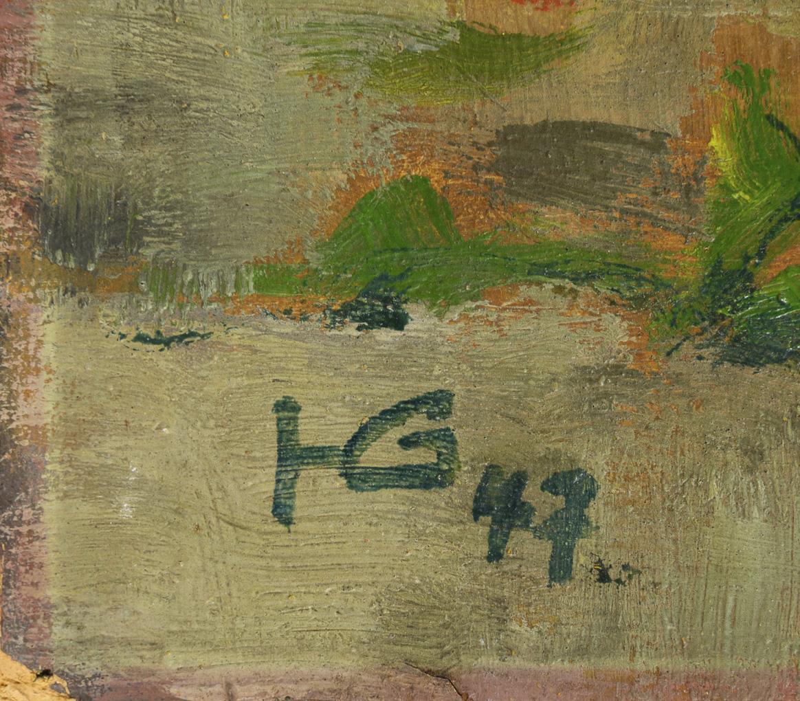 Oil / cardboard. Monogrammed lower left, verso inscribed/titled as "H. Goldschmid" with addition Immenstadt. (19)47.