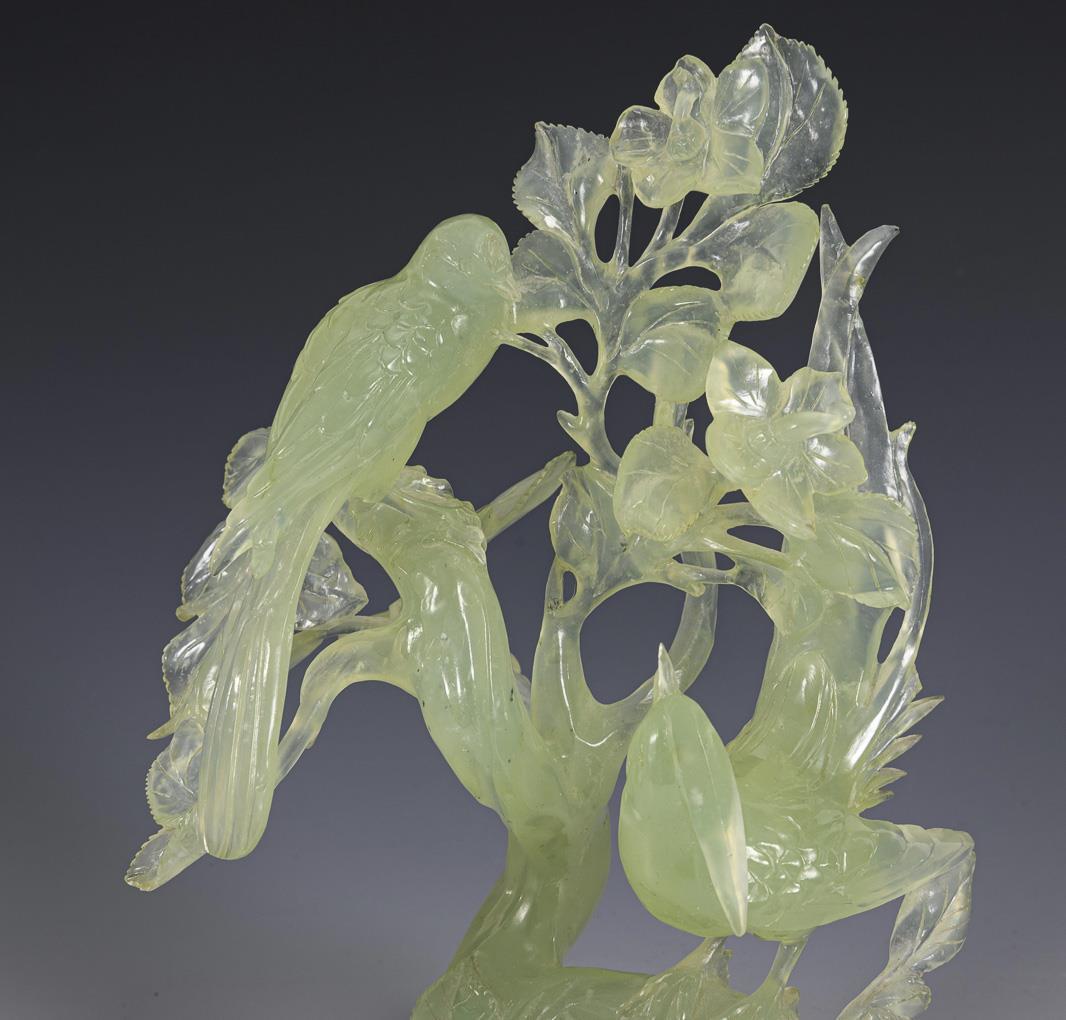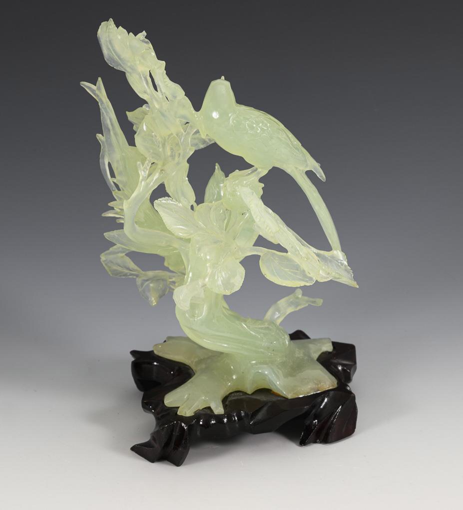 Large jade carving birds on flowering branches.