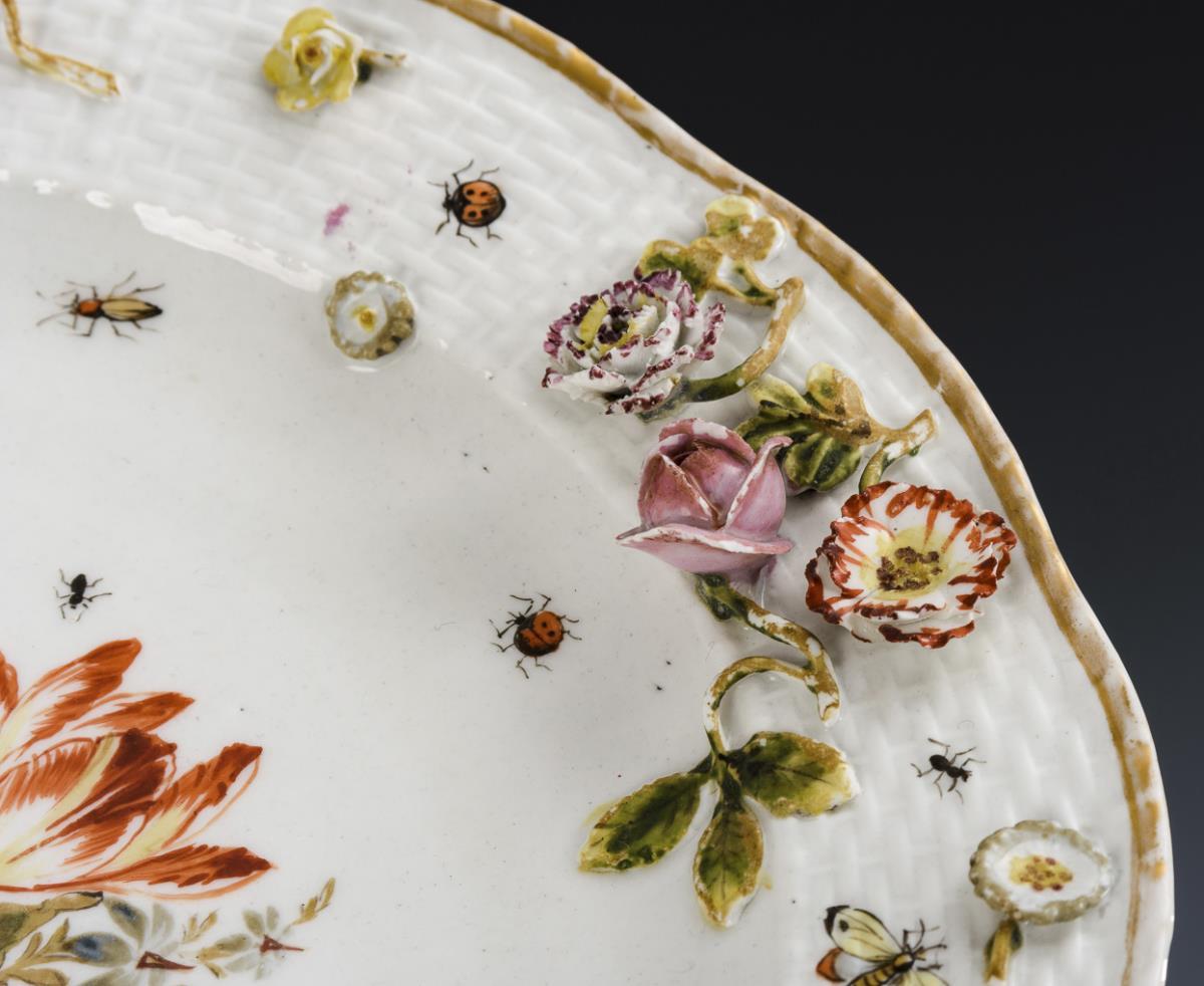 Form "Altozier". Plate with floral decorated flag and floral and insect painting. Gold rubbed, bumps on the coating.