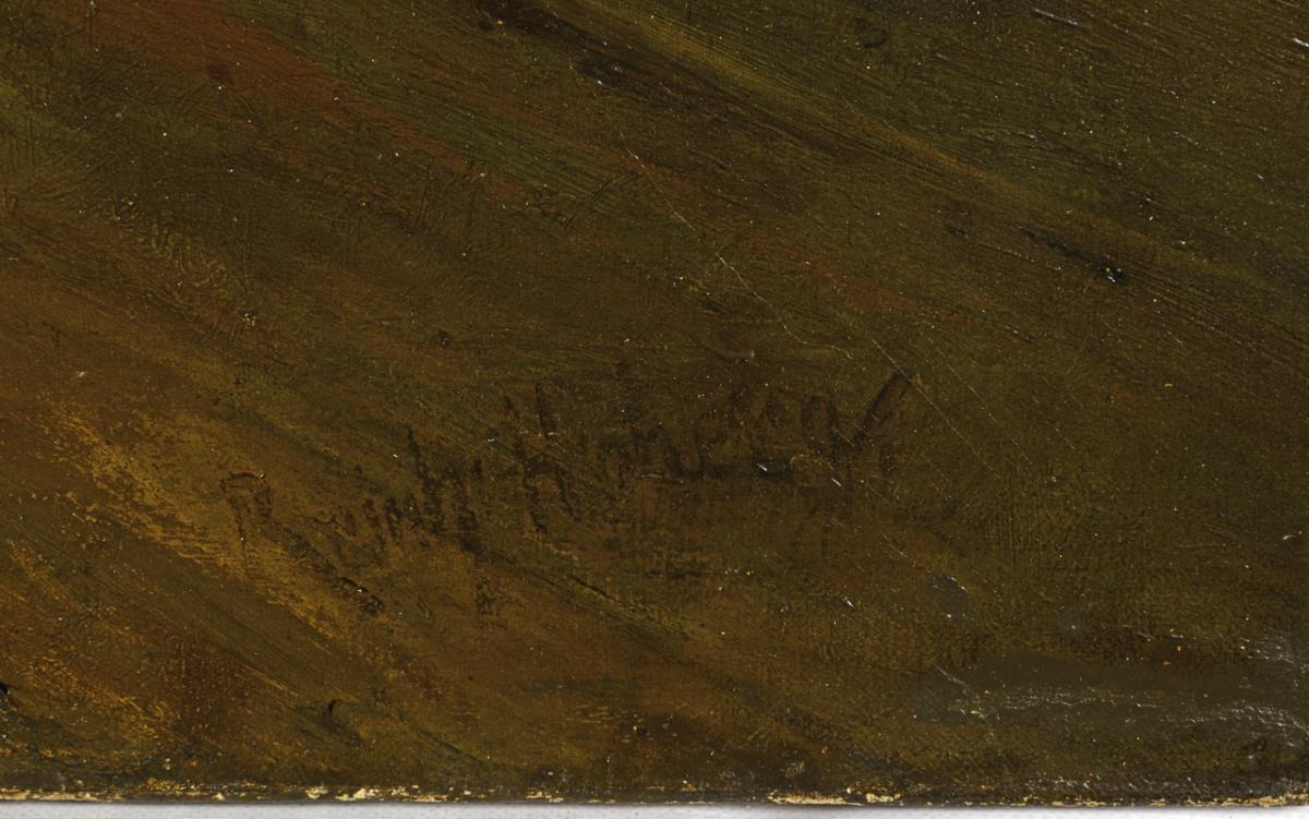 Oil/canvas. Signed lower right, verso no. "H 100".
