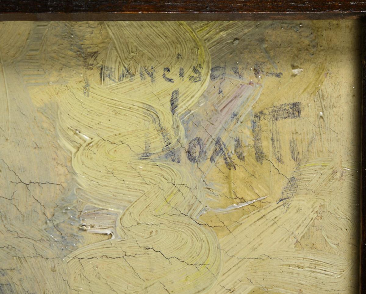 Oil / canvas / cardboard. Signed upper right, inscribed on verso.