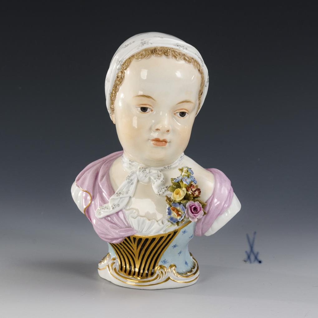 Bust of a toddler dressed in the style of the Rococo. Bouquet of flowers minimally bumped.