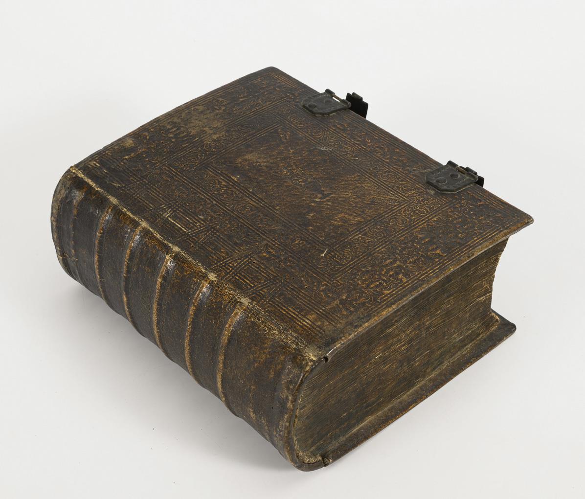 2 parts in one volume, title copperplate, title, (30), 1398, (46) pages in embossed leather binding of the time with clasps. Terms of age and wear.