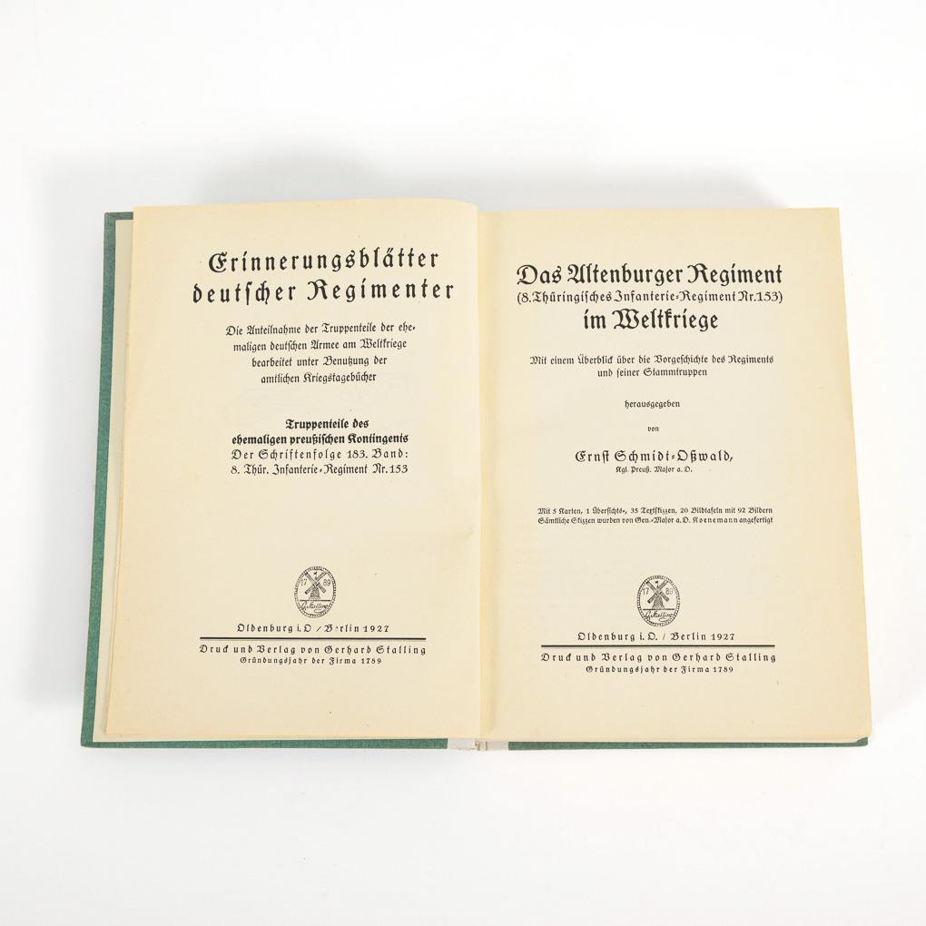 With short history of the regiment, illustrations and colored uniform chart, as well as sketches and photos of the World War, including enclosed map. 420 pages in half cloth binding.