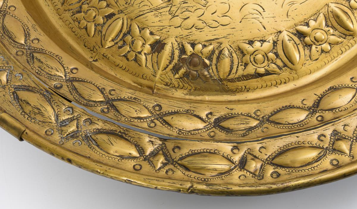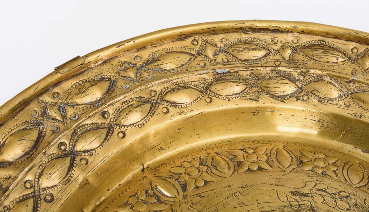 Brass chased and punched, flanged rim. Ø 50 cm.