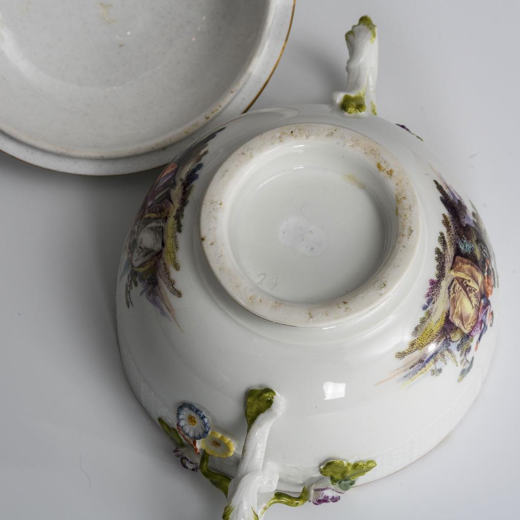 Baroque maternity tureen with Watteau painting. Meissen.