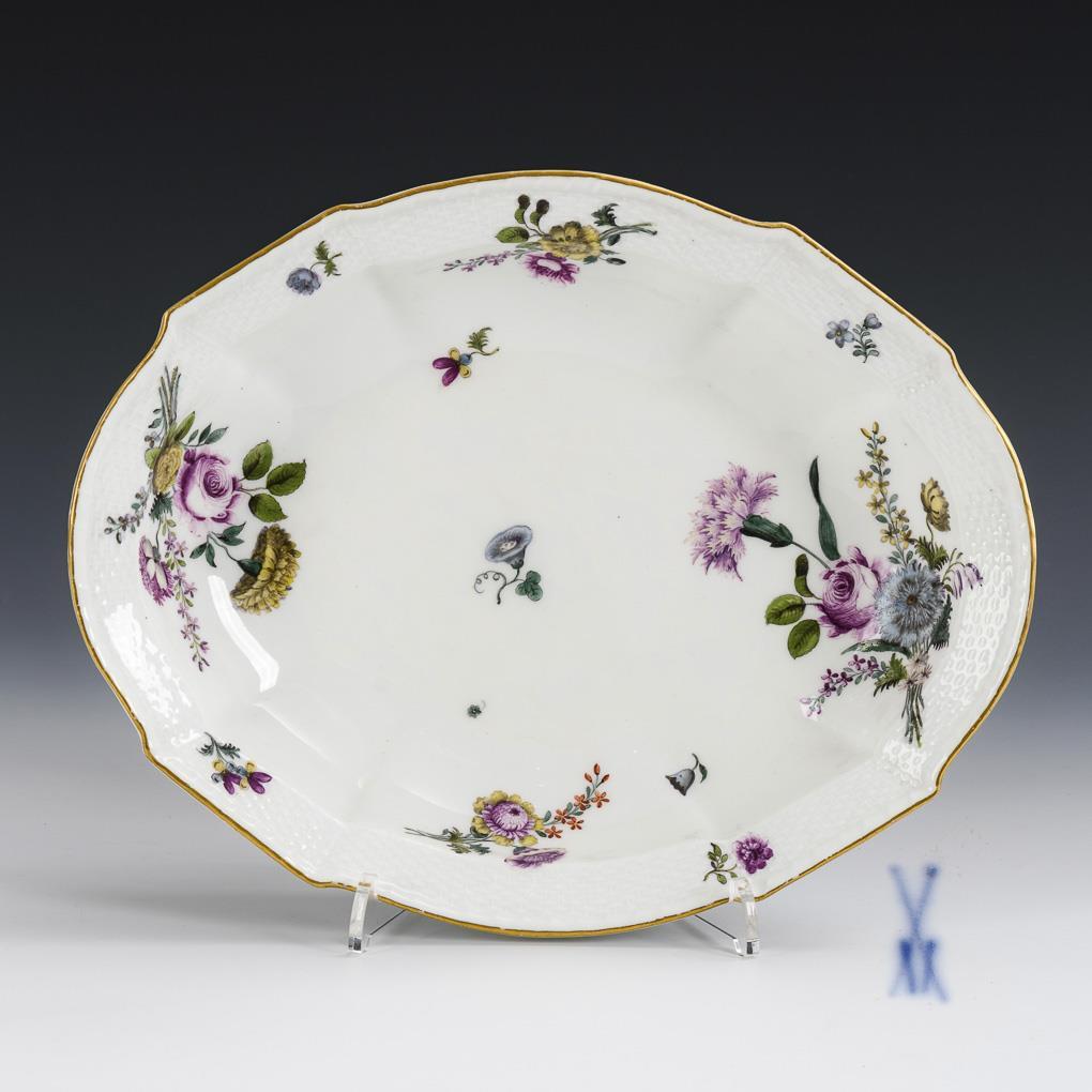Four-piece bowl with alto decor relief and floral bouquets. 1 rim restoration.