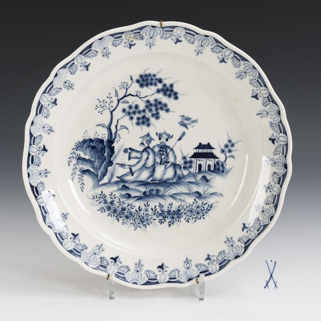 Large plate with blue painting. Meissen.