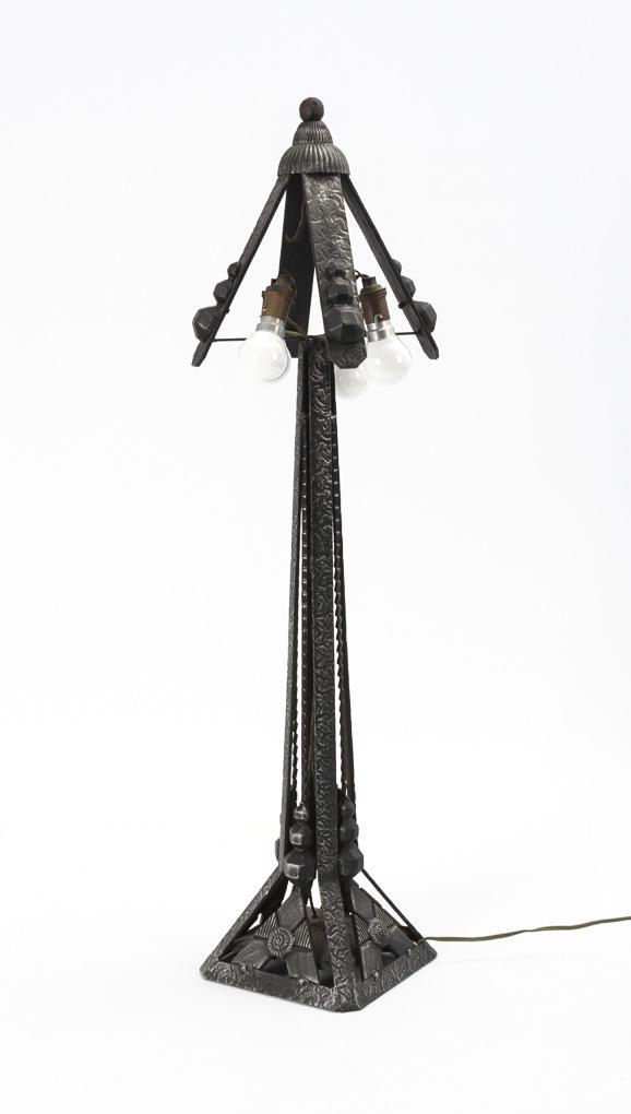 Blackened iron, colorless molded glass. H 84 cm. 8.9 kg.