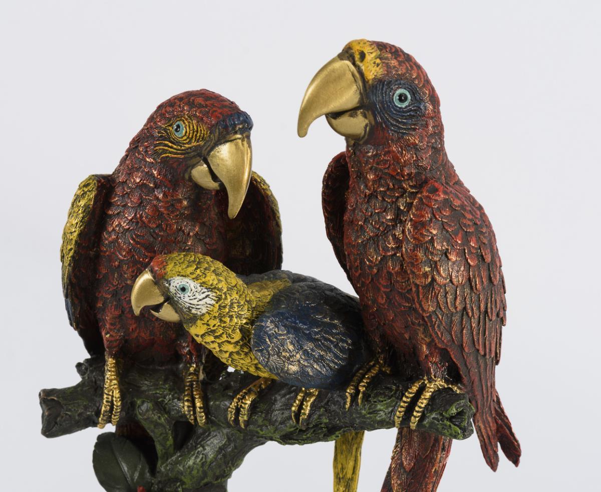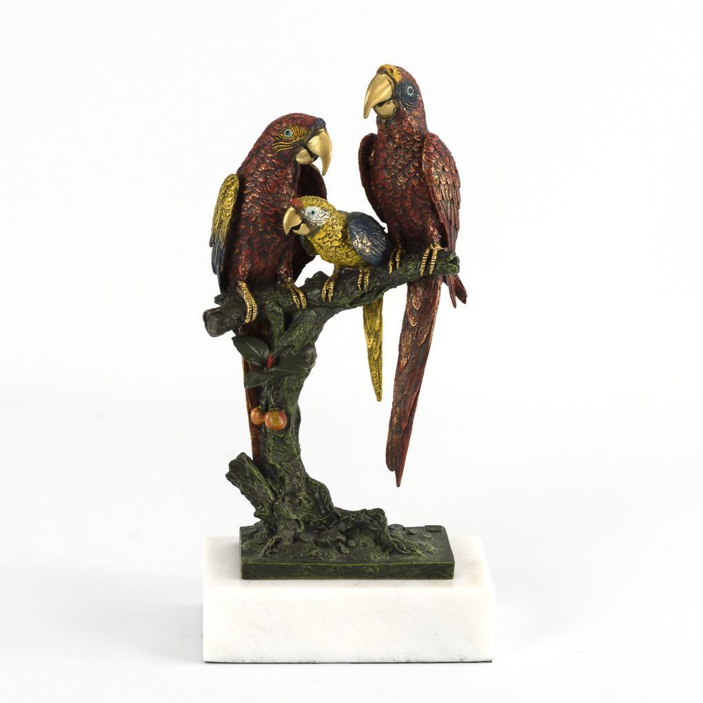 Bronze polychrome set, white marble plinth. Inscribed, foundry mark "L'Art Bronze Qualité France". H 34 cm, total 39 x 19 x 11 cm. 6,5 kg.