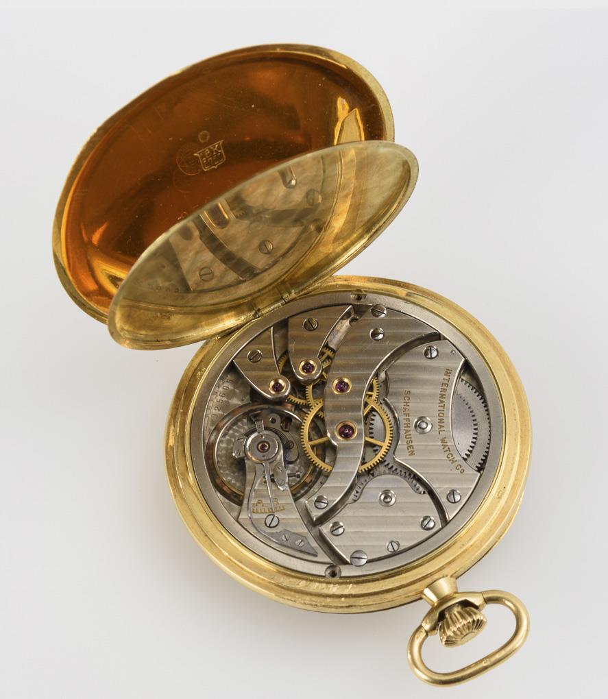 18 kt hallmarked, Helvetia mark, company mark, gold dust cover. Ø 4,6 cm. 60 g.