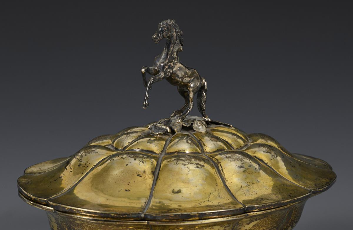 Gilt silver box with plastic horse. B. Neresheimer & Sons, Hanau.