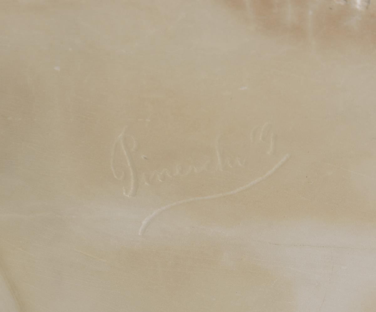 Alabaster. Early 20th c. Signed. H 42 / 49 cm. 26,5 kg.