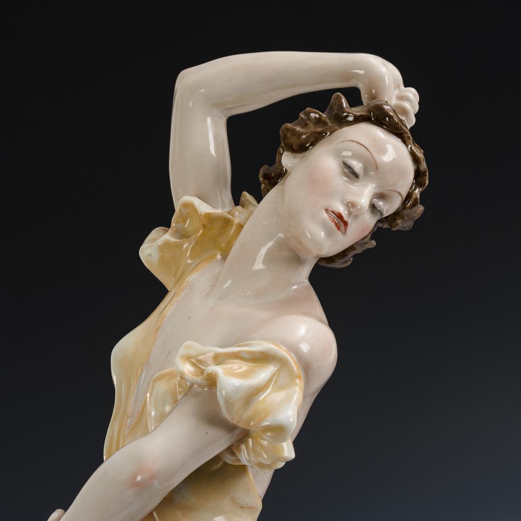Sculpture of the dancer in an expressive dance pose. Chip on the hem of the skirt.