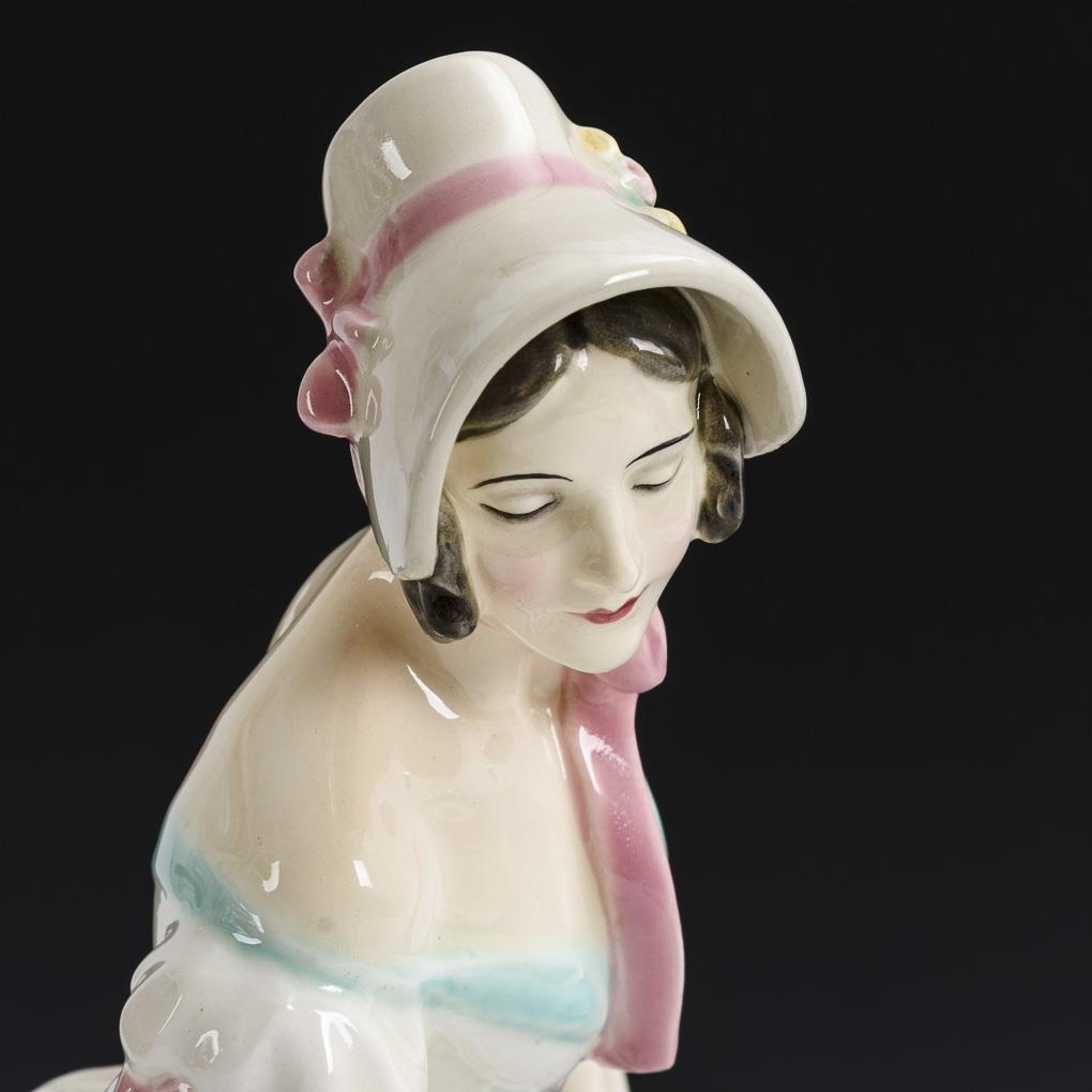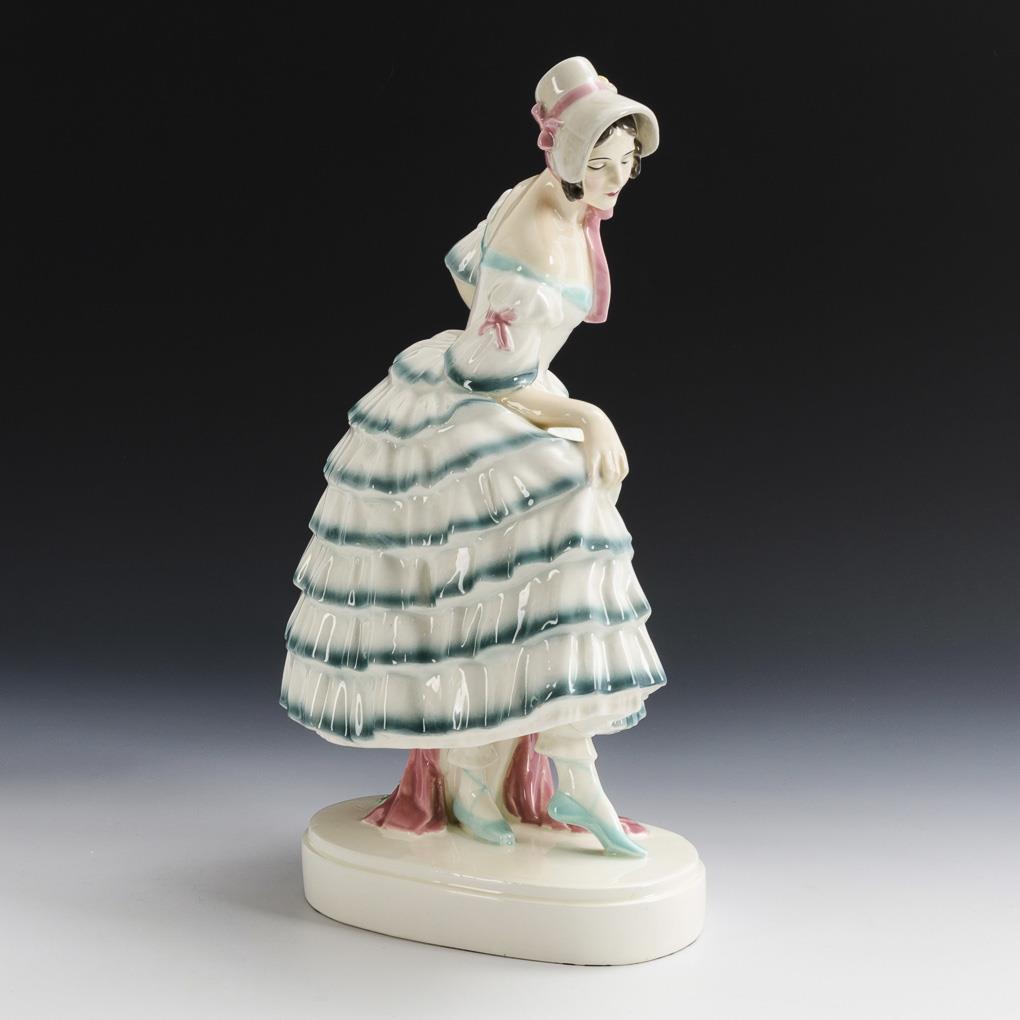 Dancing Biedermeier lady in crinoline dress. Keramos, Viennese art ceramics.