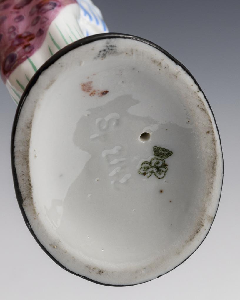 2 production-related chips to the rim of the hat under the overglaze painting.