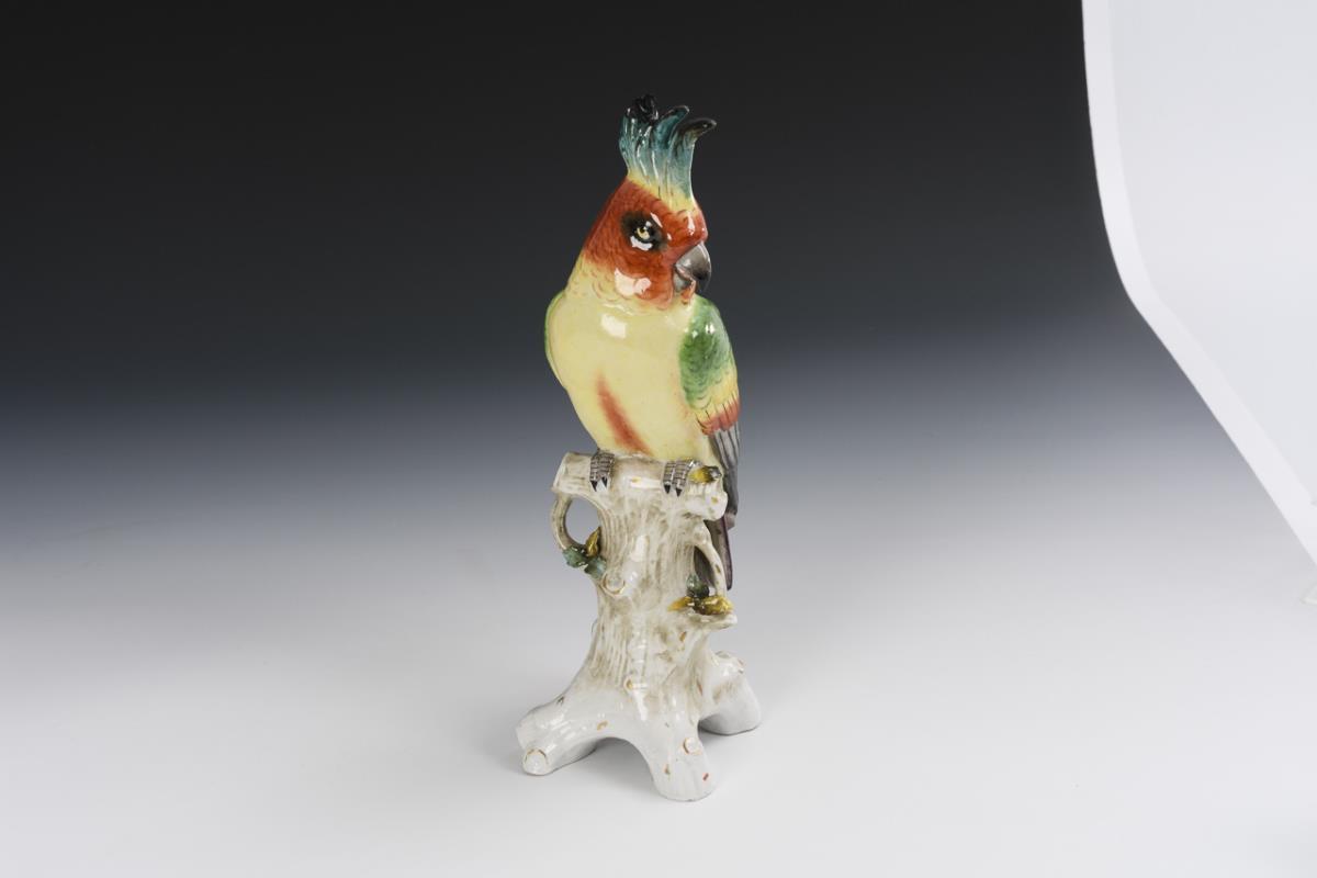 Cockatoo sitting on a tree trunk base. Hood restored, 1 leaf bumped.