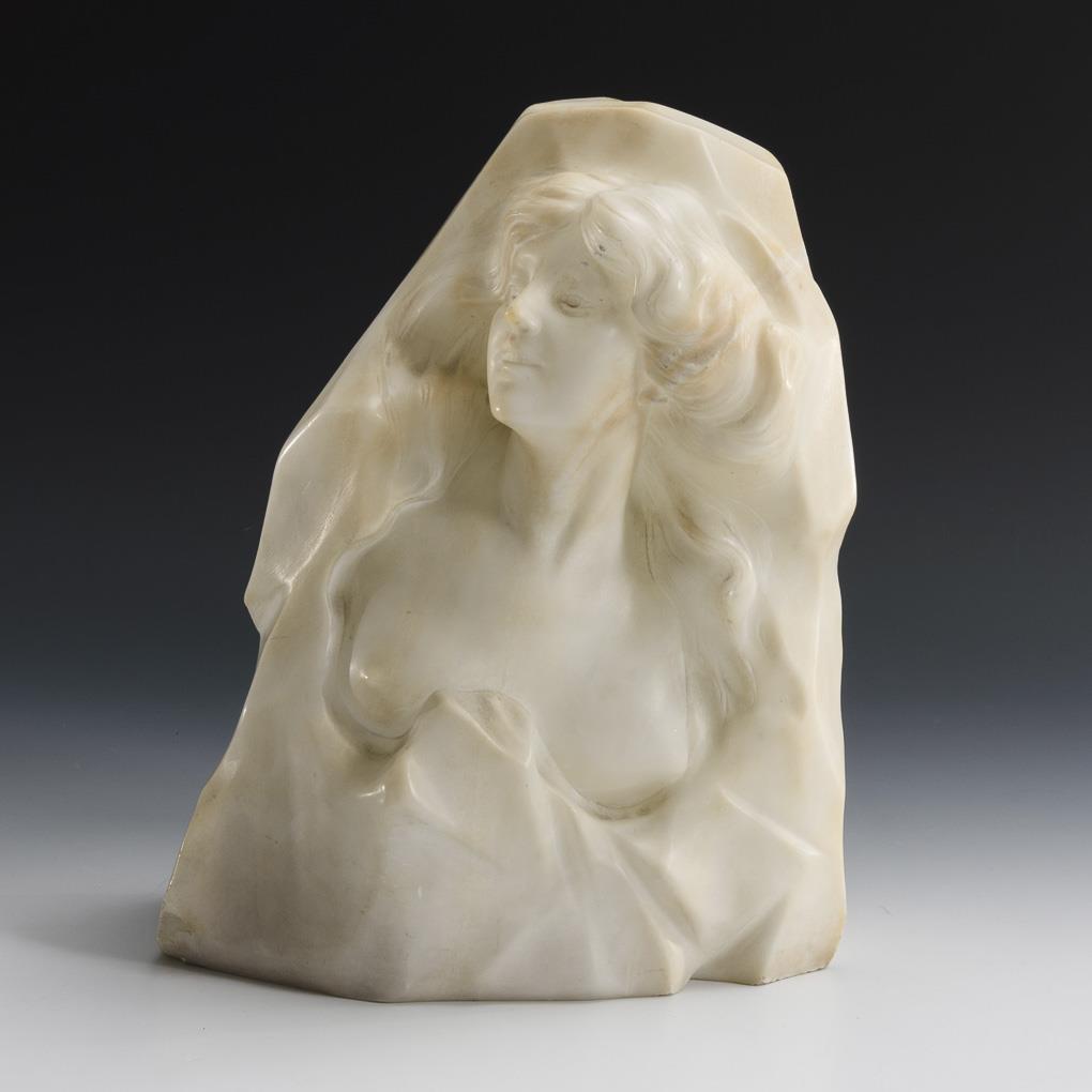 Peeling out of the stone, as it were, relief portrait of a young woman with free breasts. Minimal signs of age/use.