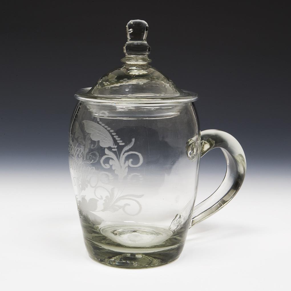 Large Biedermeier lidded tankard.