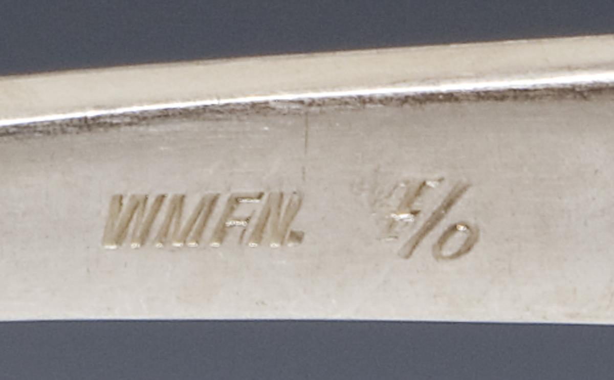 Model by Albert Mayer, model no. 44. Engraved and relief ornamental decoration. Hallmarks: WMF, Beimarken N I/0 (N stands for nickel or alpacca, I/0 = silver plated).