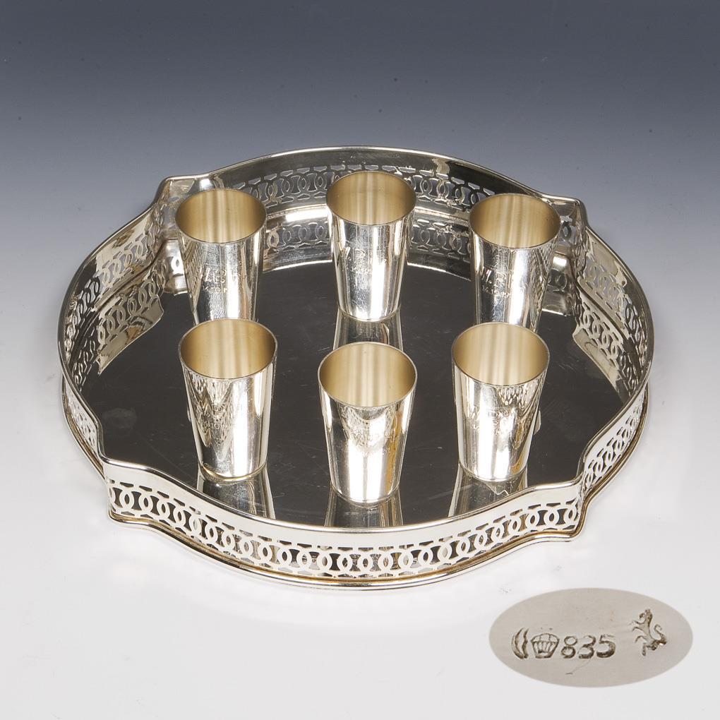 Set of 6 liqueur cups, tray.