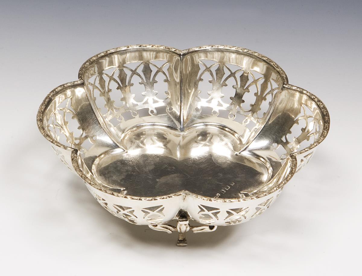 Fitted curved form with ornamental openwork wall on three feet.
