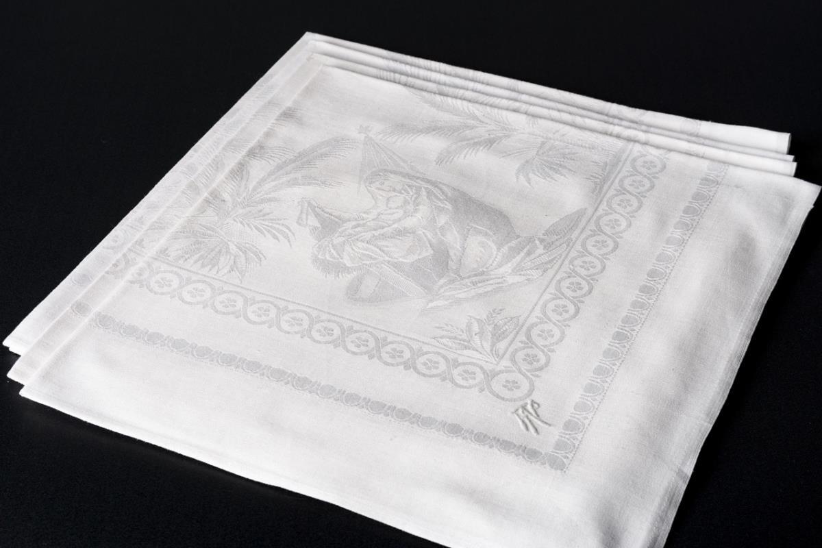 4 damask picture mouth cloths with the baby Jesus.