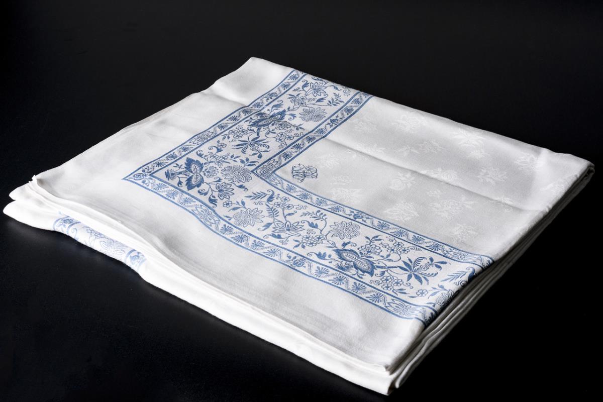 Rare large table cloth with woven Meissen onion pattern.