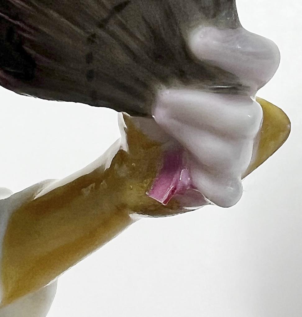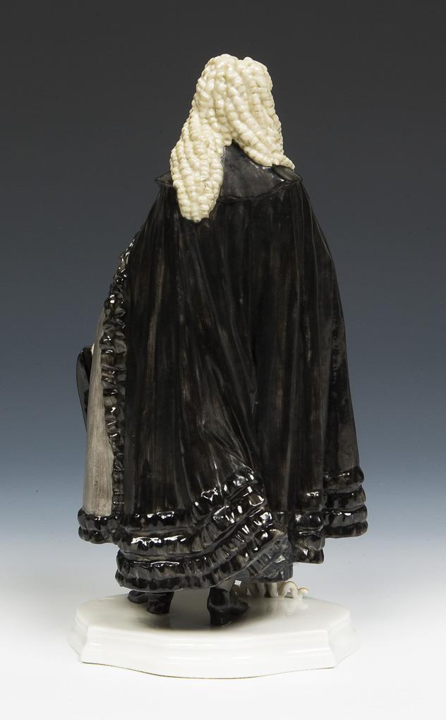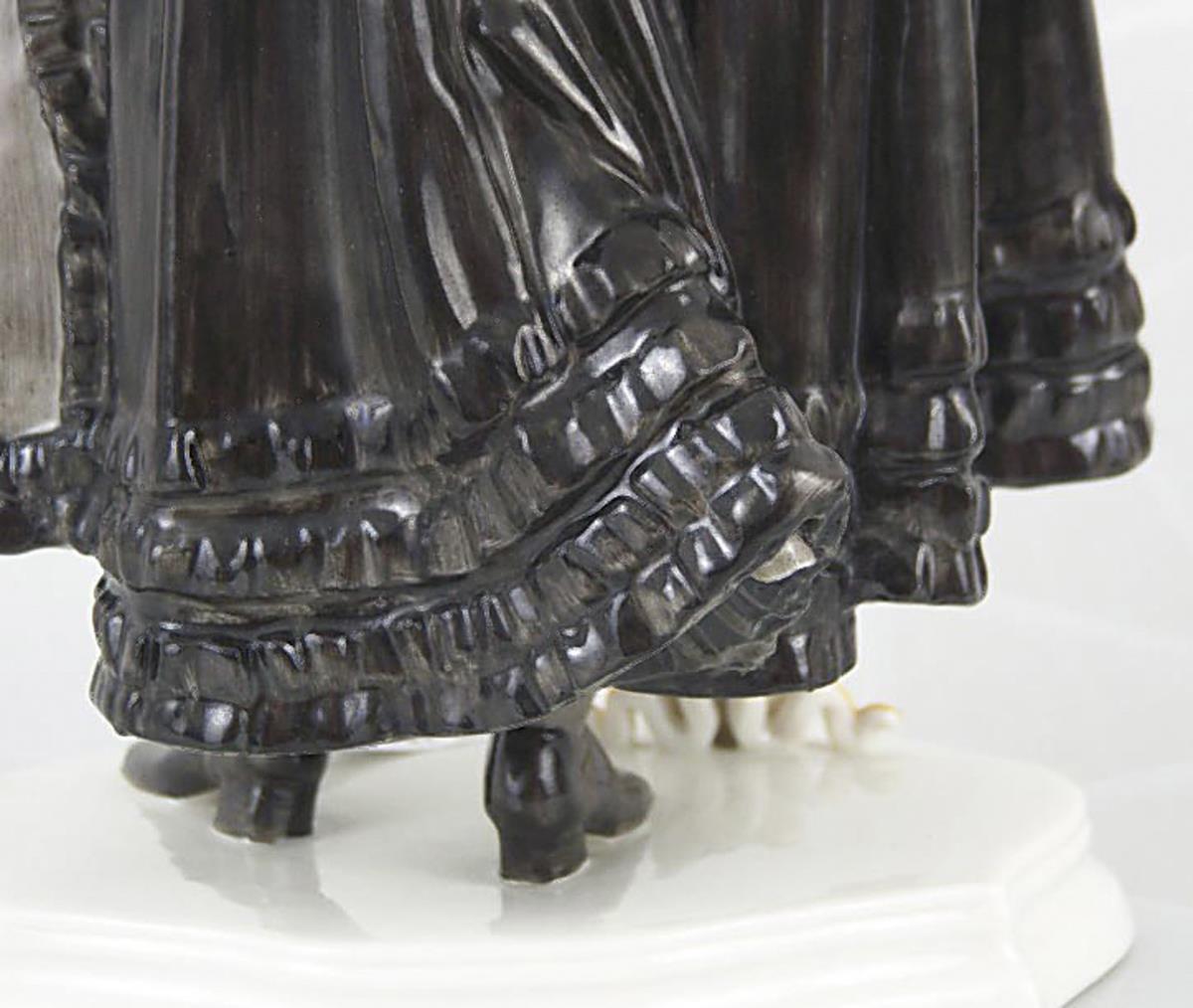 Model by Resl Schröder-Lechner 1941. colorfully painted, press marks, bottom marks. Fan ribbon, back epee tip bumped.