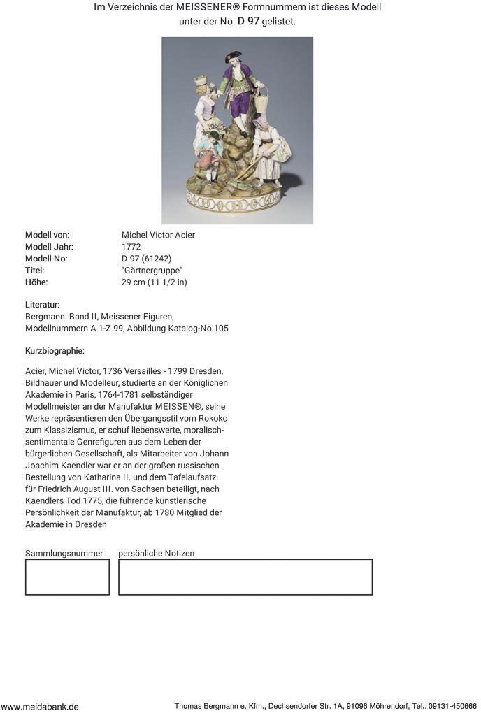 Acier, sculptor and modeller, studied at the Academy in Paris, 1764-1781 independent model master in Meissen * Partner auction miner.