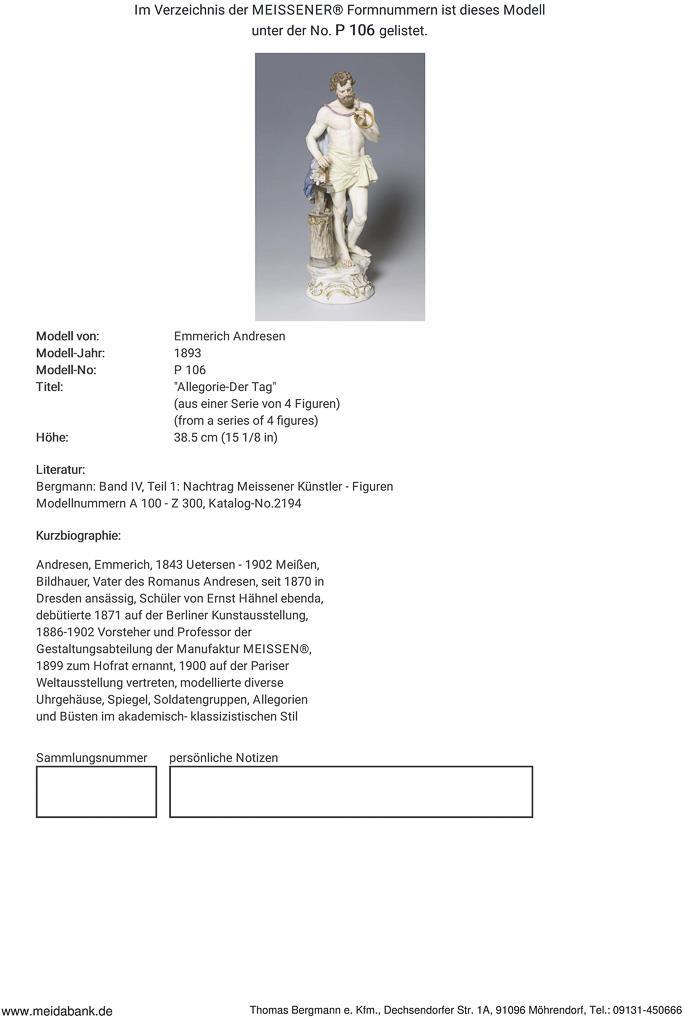 Andresen, sculptor, 1886-1902 head and professor of the design department in Meissen, representative of academic classicist art * Partner auction Bergmann.