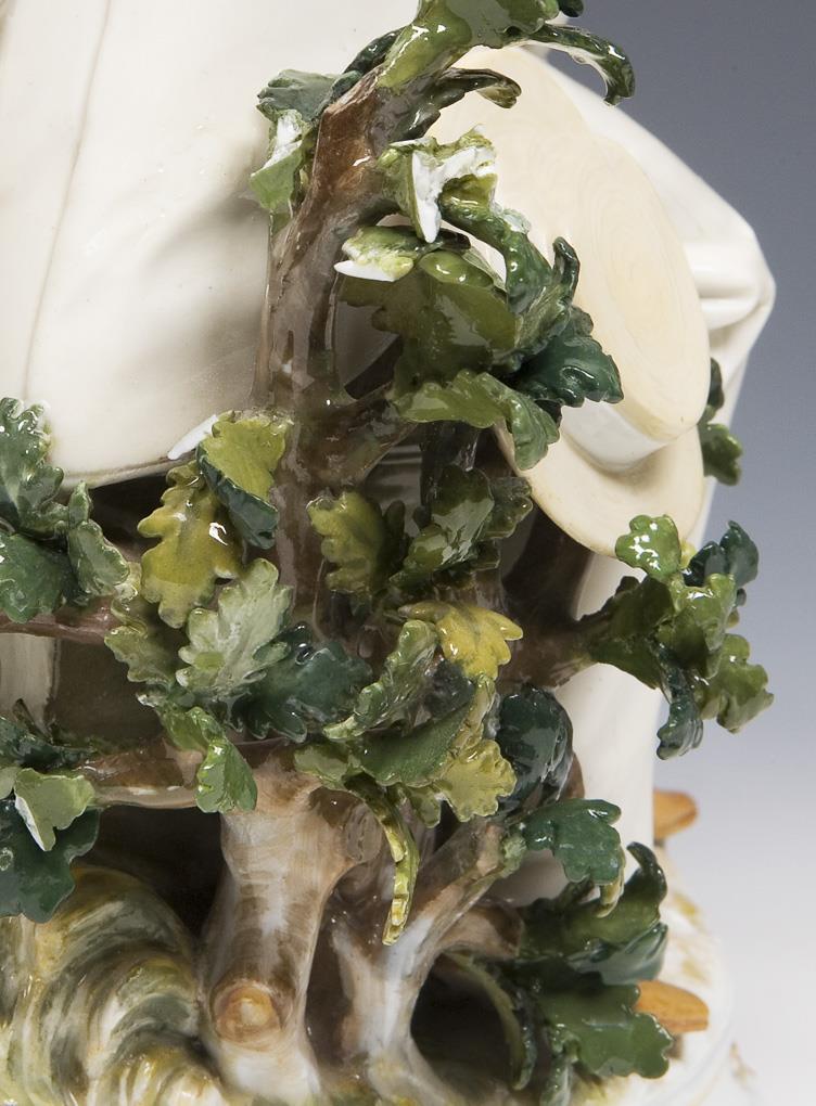 Model by Romanus Andresen 1898. colorfully painted, gold painted. Incised mark, pressed mark, painter's mark, sword mark. Ladies hat, blüten, blätter, a coat corner restored, some blätter, umbrella minimally bestoß.