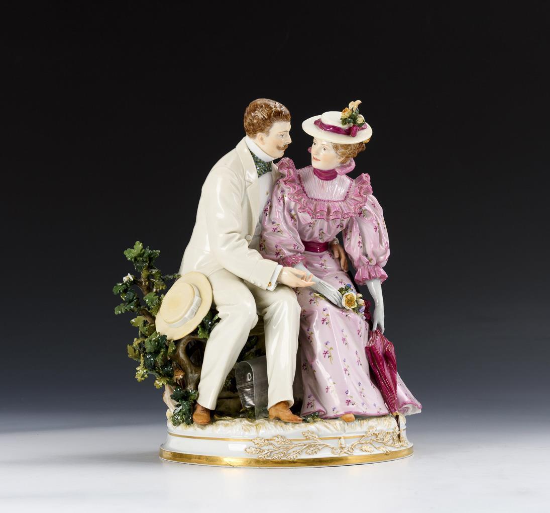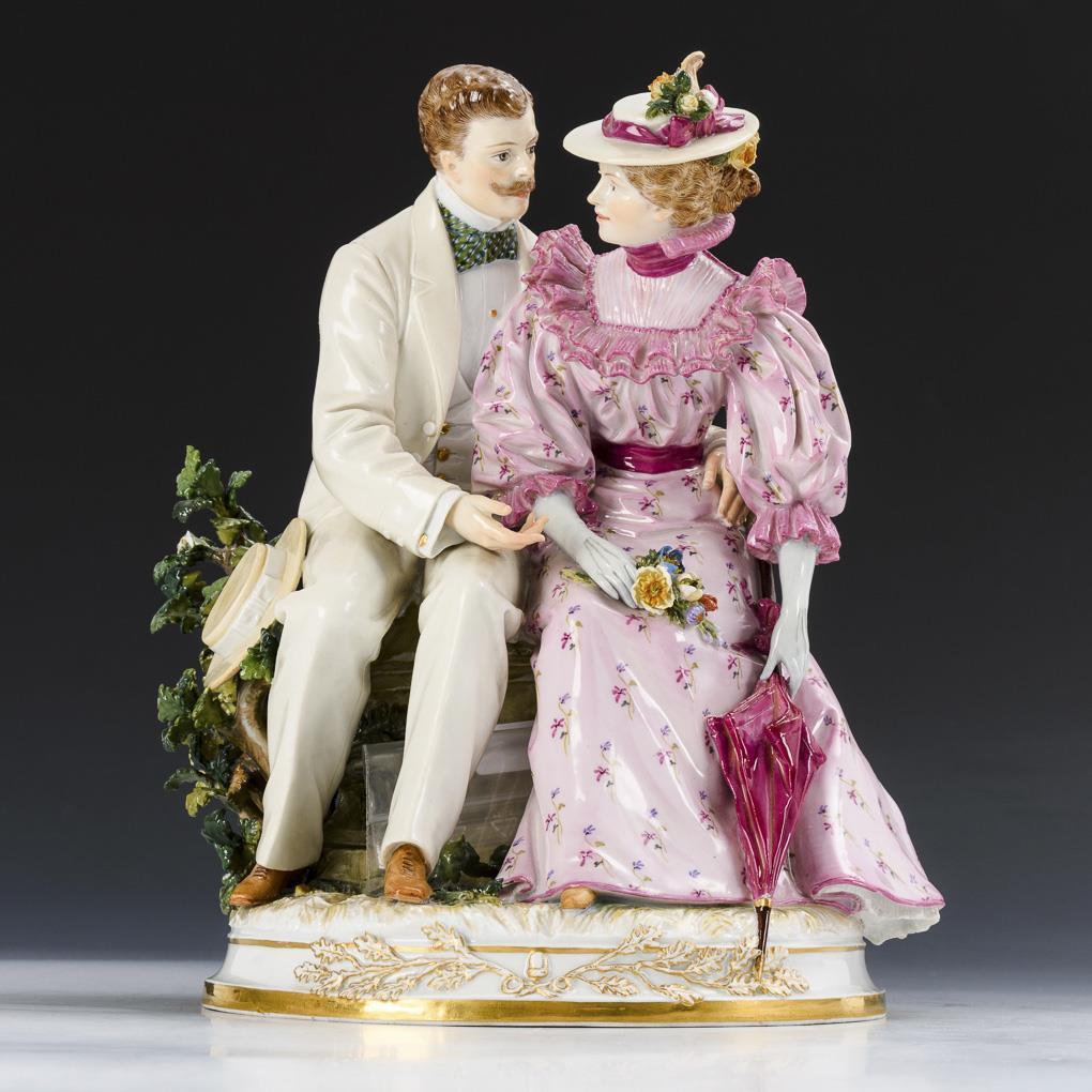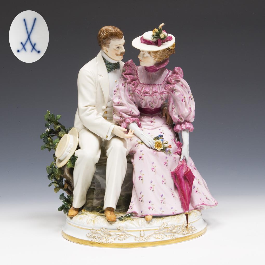 Rare group of figures: rendezvous in the park. Meissen.
