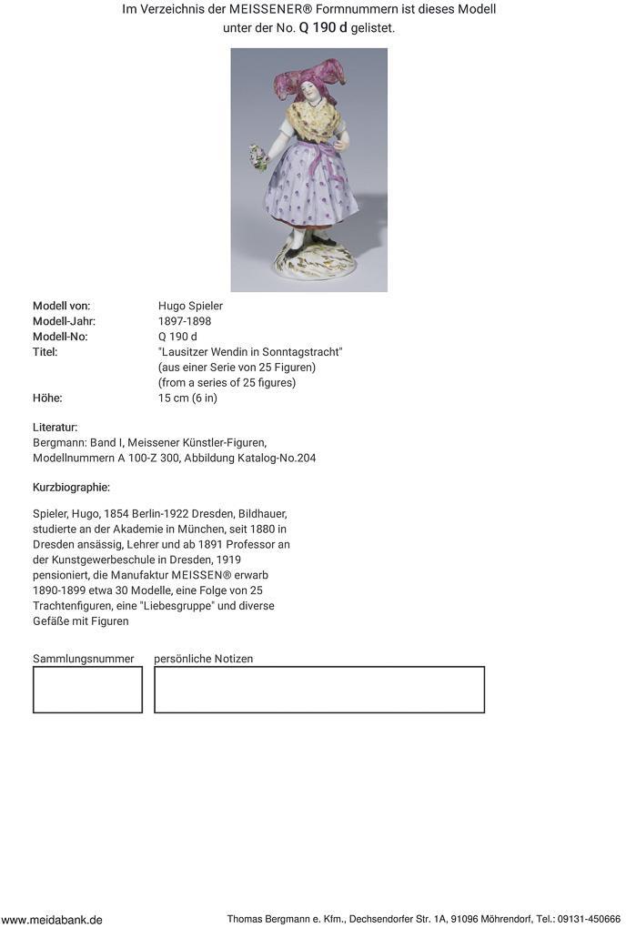 Player, sculptor, studied at the Academy in Munich. Active in Dresden since 1880, professor in 1891. Meissen acquired about 30 models in 1890-1899 * Partner auction Bergmann.